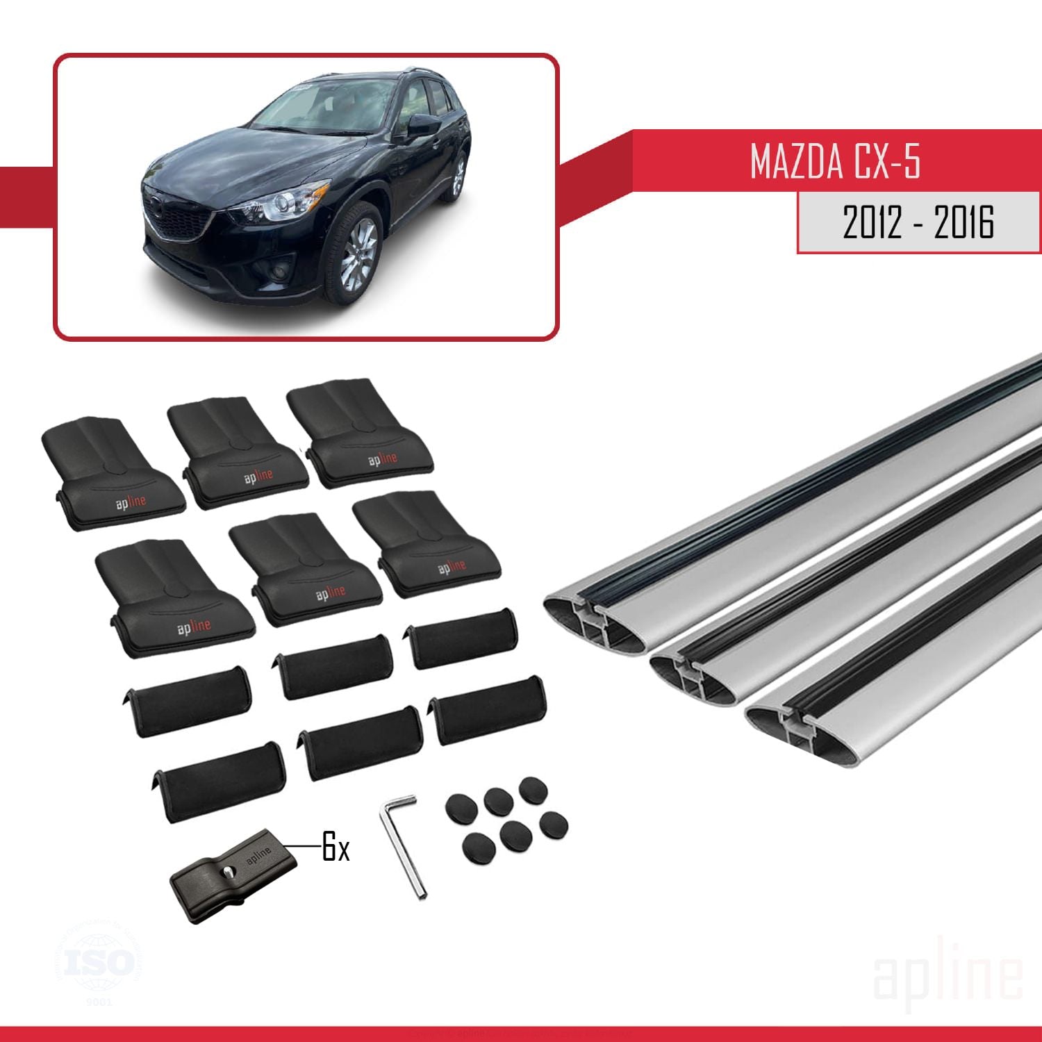 Mazda CX-5 I (KE) 2012-2016 fly Model Car Roof Rack Cross Bar Grey Aluminium 3 Bars