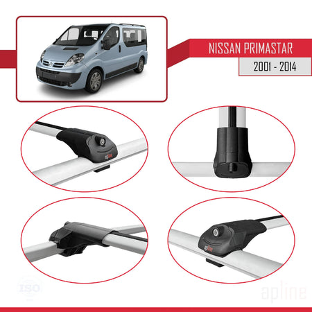 Nissan Primastar 2001-2014 ACE-1 Car Roof Rack Cross Bar Grey Aluminium 4 Bars