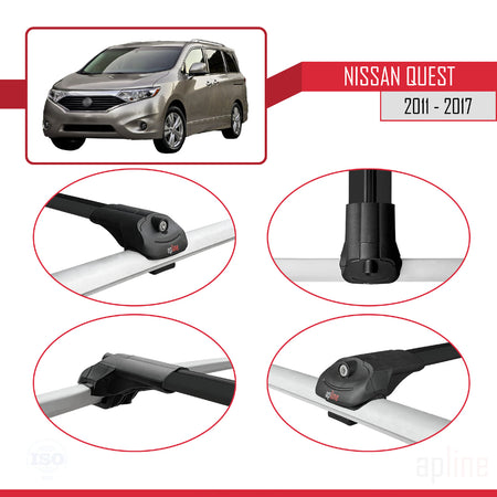 Nissan Quest 2011-2017 ACE-1 Car Roof Rack Cross Bar Black Aluminium 4 Bars