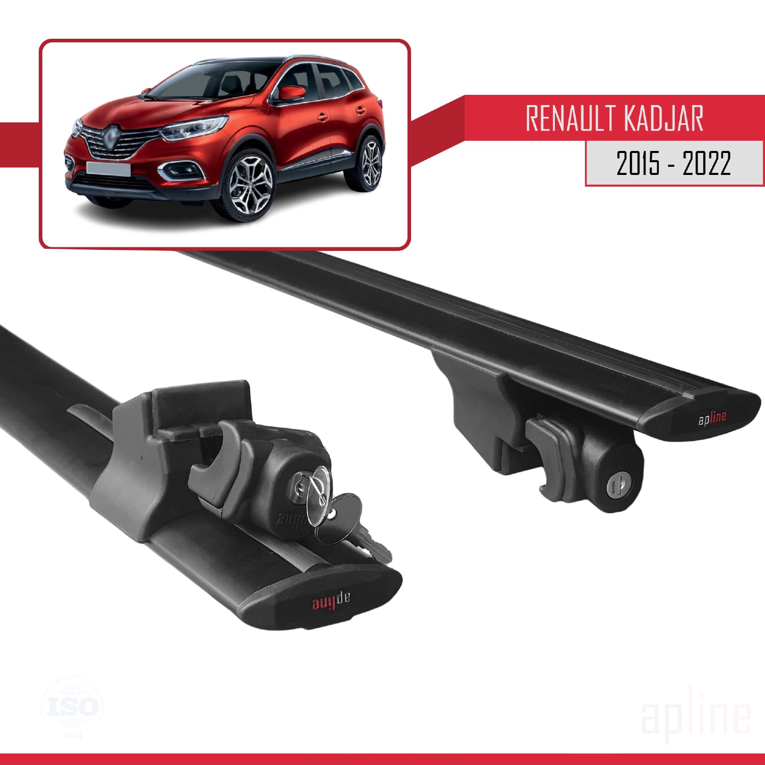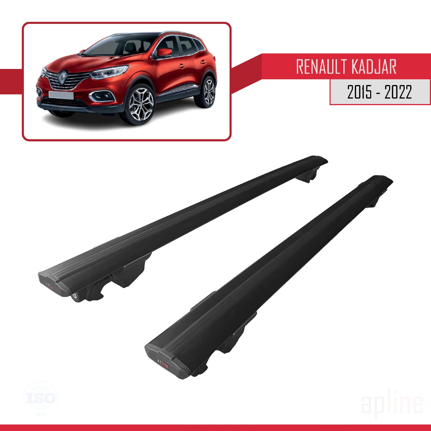 Renault Kadjar 2015-2022 hook Model Car Roof Rack Cross Bar Black Aluminium 2 Bars