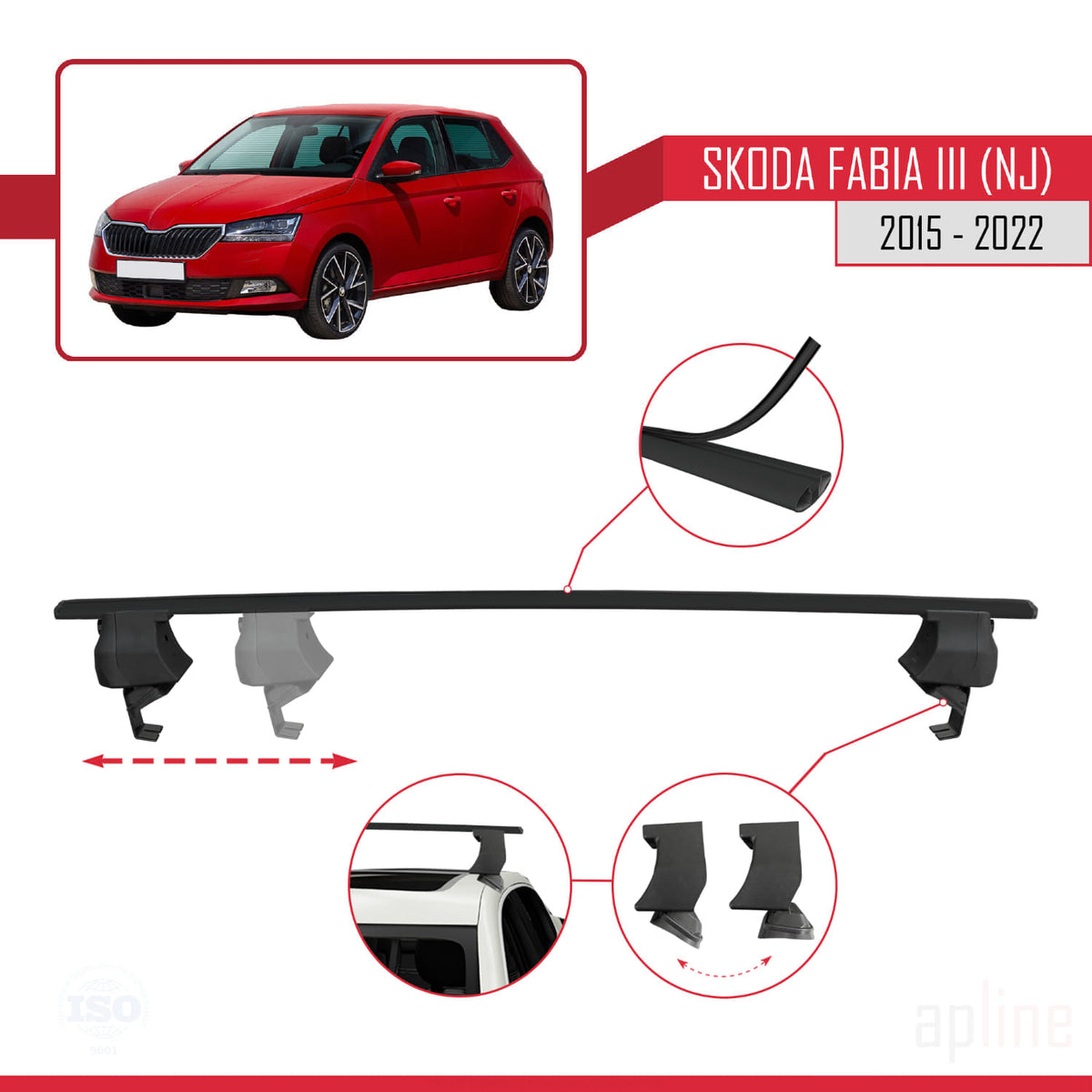Skoda Fabia 3 (NJ) 2015-2022 ace4 Car Roof Rack Cross Bar Black Aluminium 2 Bars