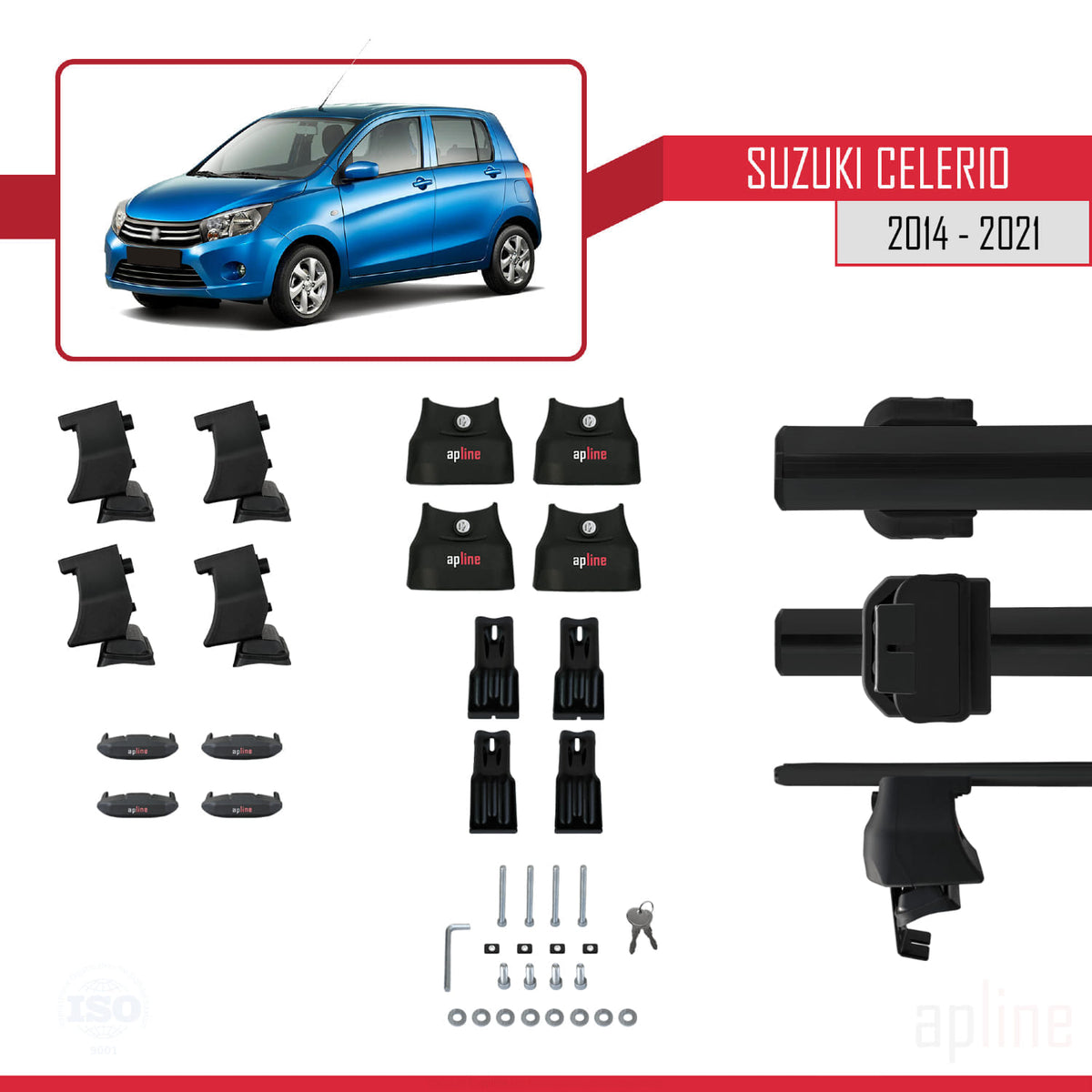 Suzuki Celerio 2 (FE) 2014-2021 ace4 Car Roof Rack Cross Bar Black Aluminium 2 Bars