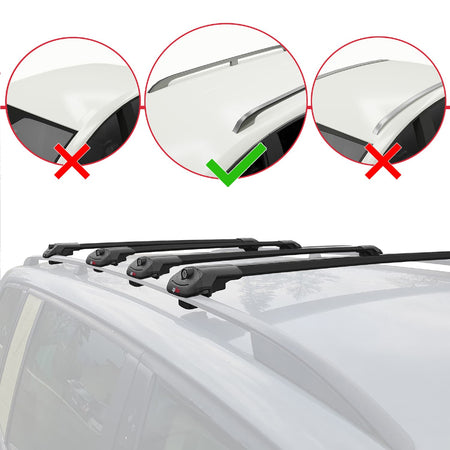 Note: Not suitable for vehicles without roof rails. Please refer to the technical drawings in the images to confirm compatibility with third-party accessories.