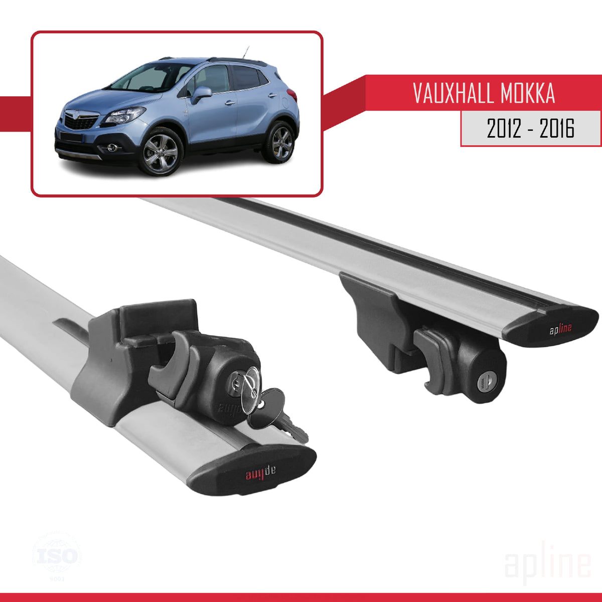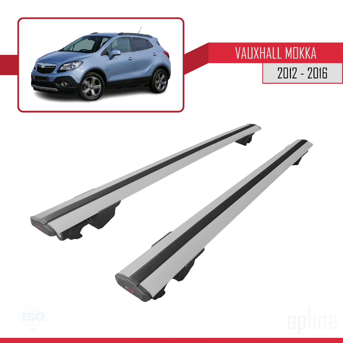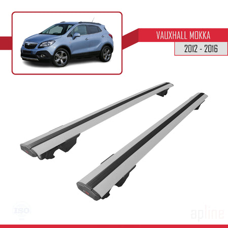 Vauxhall Mokka A (J13) 2012-2016 hook Model Car Roof Rack Cross Bar Grey Aluminium 2 Bars