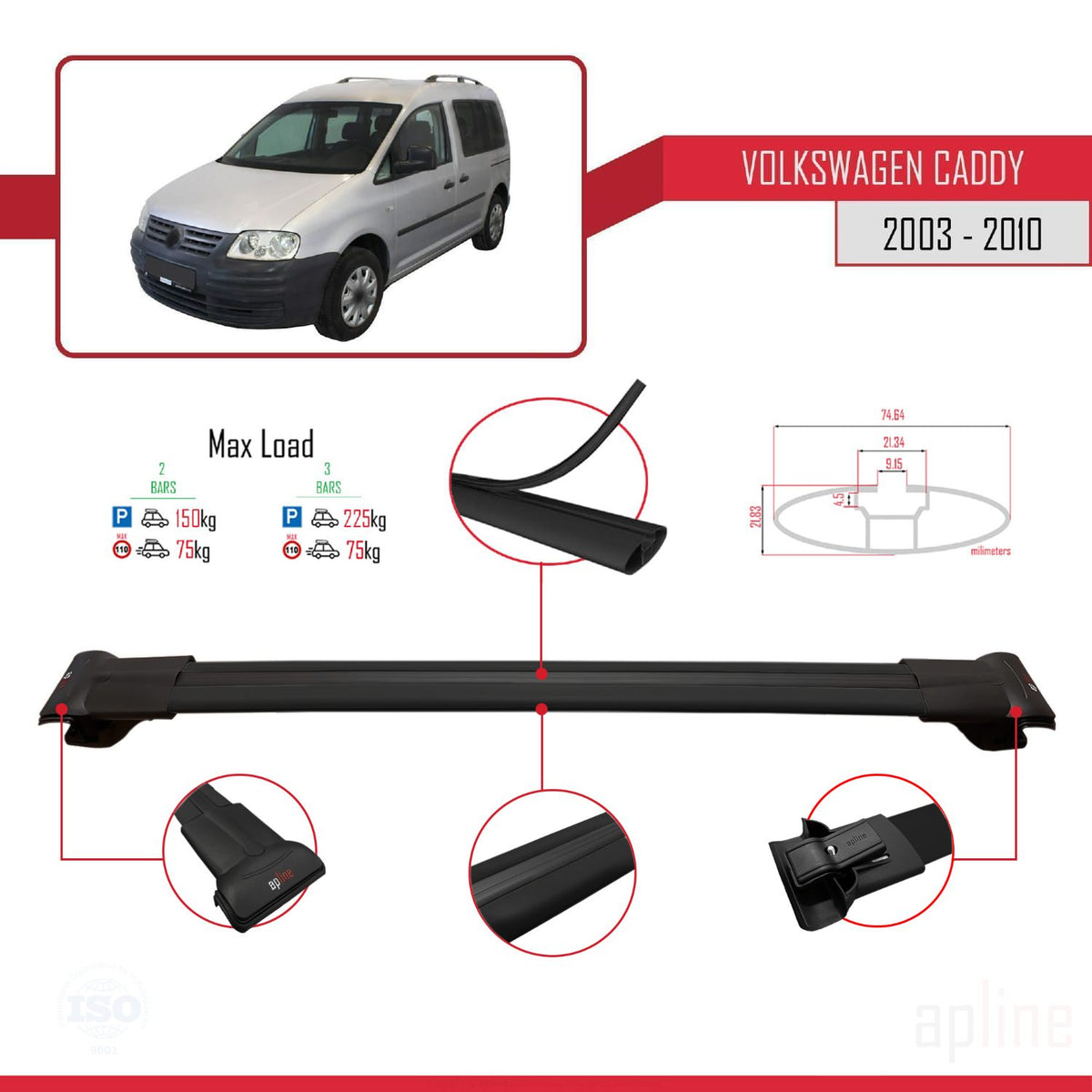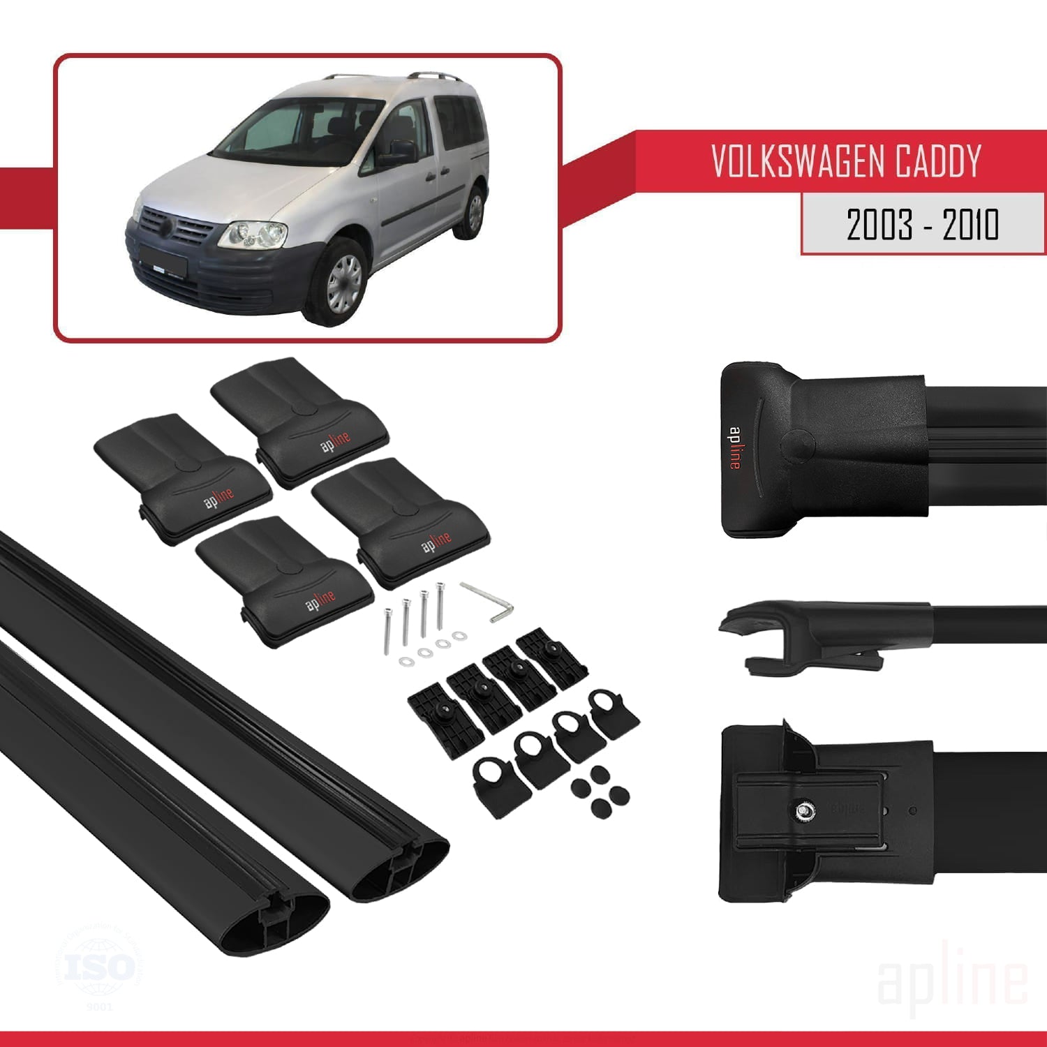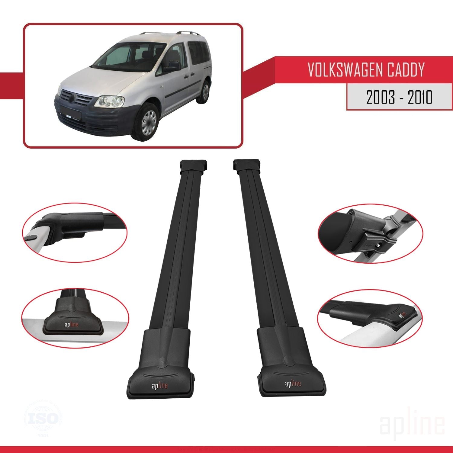 Volkswagen Caddy 3 (2K) 2003-2010 fly Model Car Roof Rack Cross Bar Black Aluminium 2 Bars