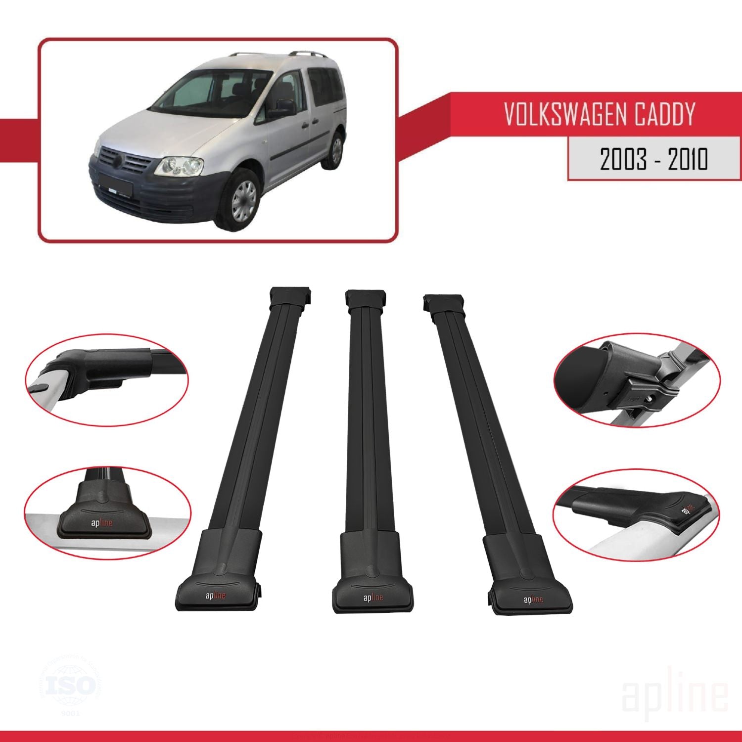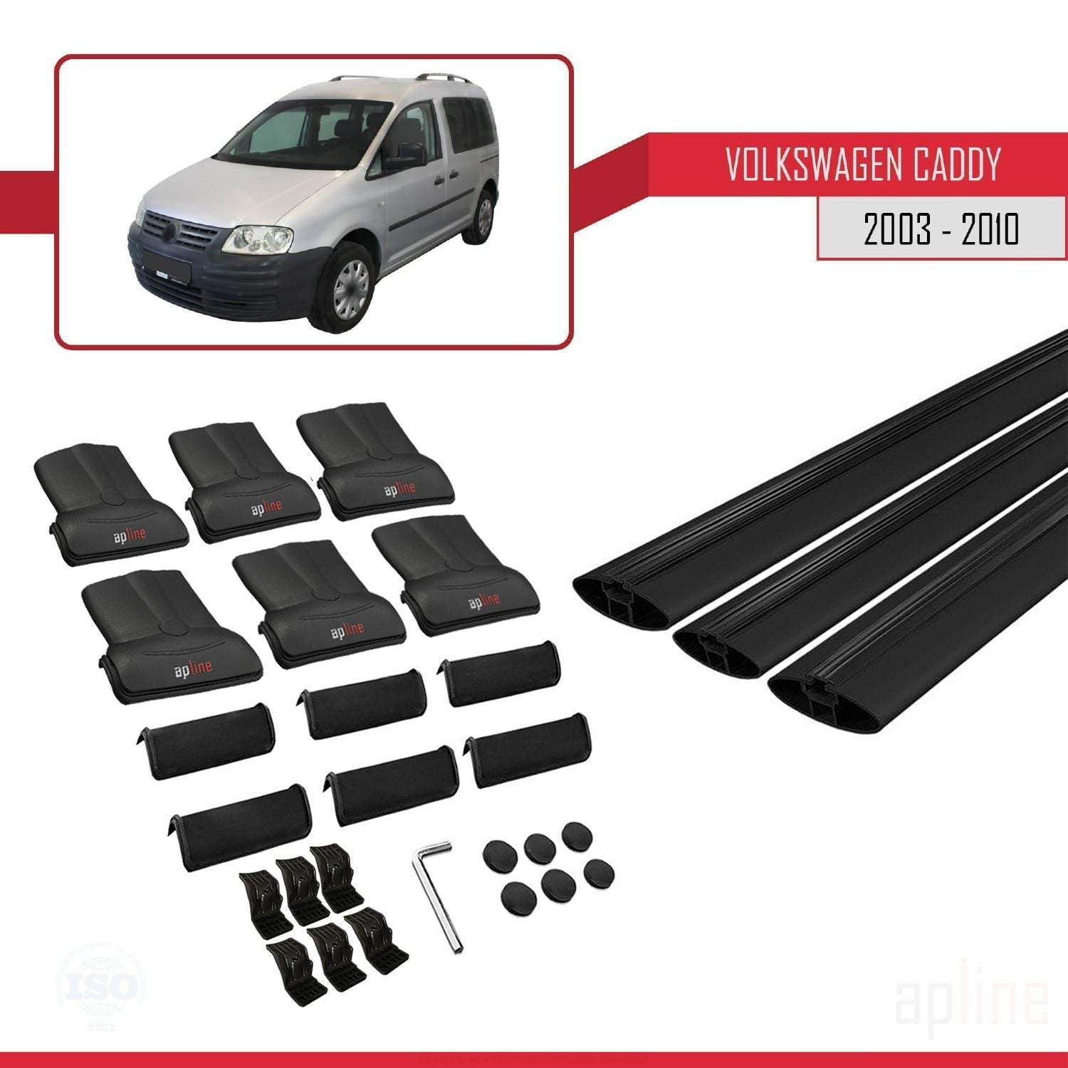 Volkswagen Caddy 3 (2K) 2003-2010 fly Model Car Roof Rack Cross Bar Black Aluminium 3 Bars