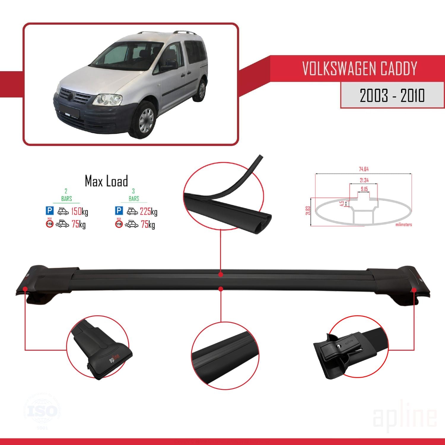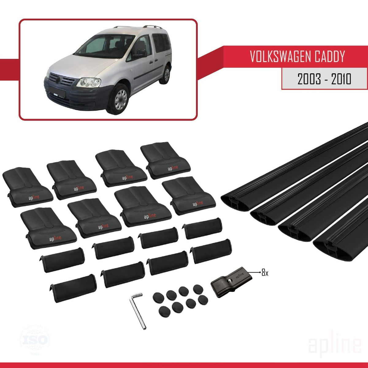Volkswagen Caddy 3 (2K) 2003-2010 fly Model Car Roof Rack Cross Bar Black Aluminium 4 Bars