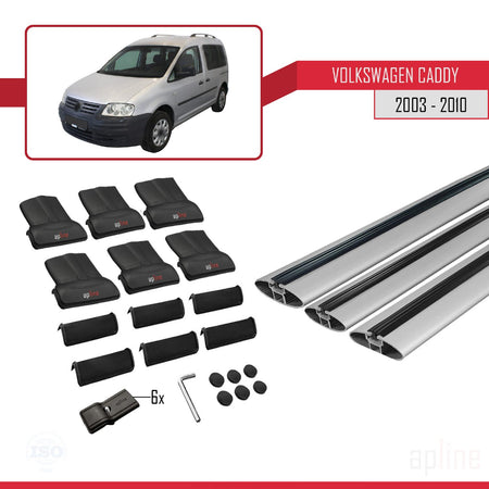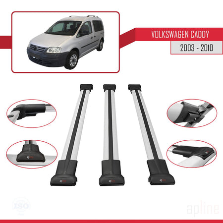 Volkswagen Caddy 3 (2K) 2003-2010 fly Model Car Roof Rack Cross Bar Grey Aluminium 3 Bars