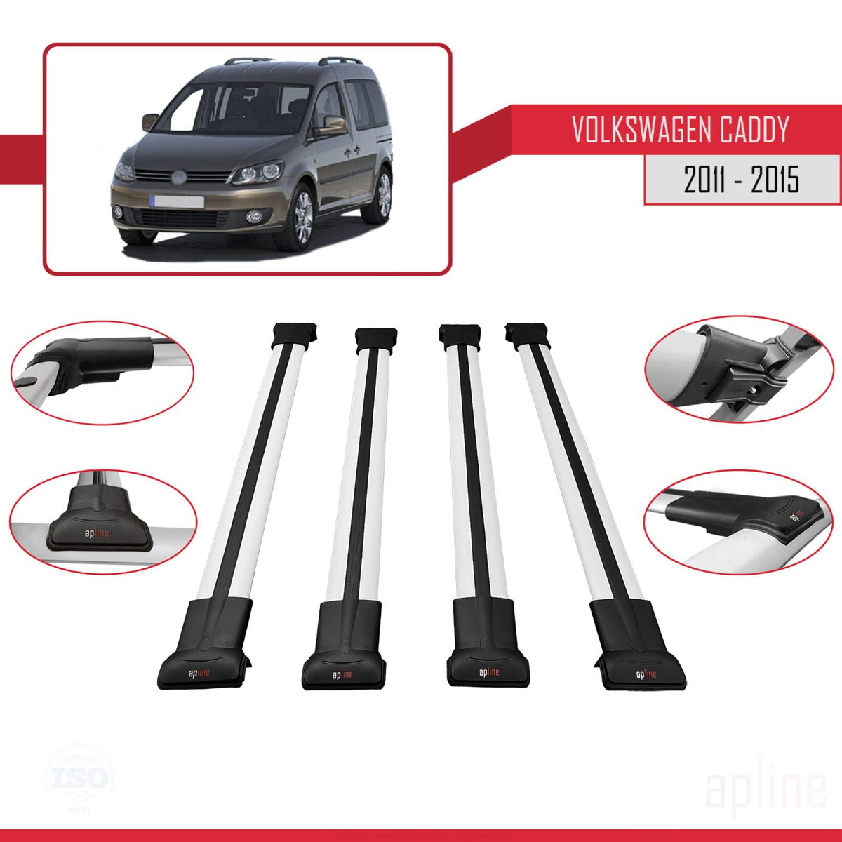 Volkswagen Caddy 3 (2K) 2011-2015 fly Model Car Roof Rack Cross Bar Grey Aluminium 4 Bars