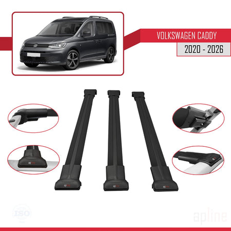 Volkswagen Caddy 4 (SB) 2020-2025 fly Model Car Roof Rack Cross Bar Black Aluminium 3 Bars