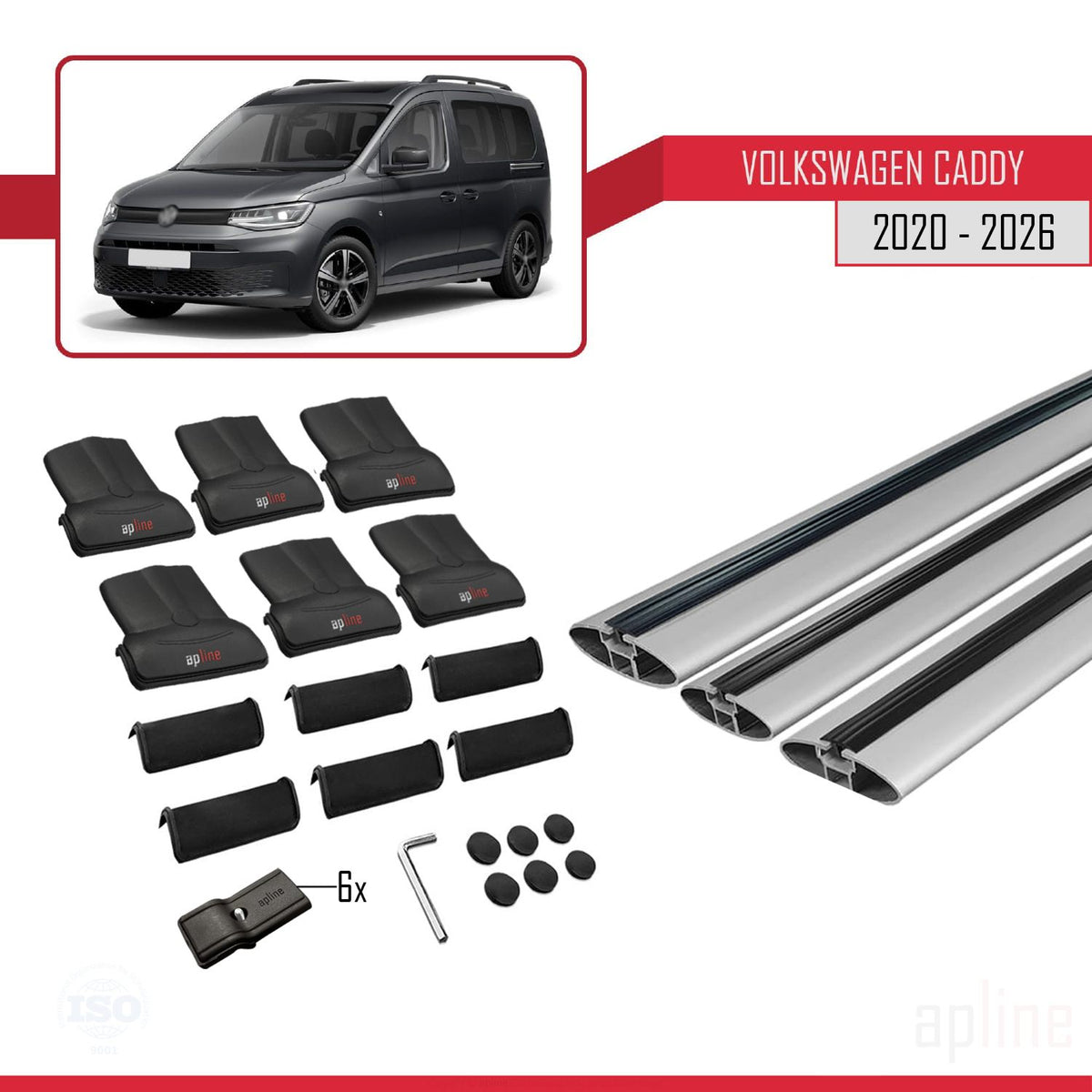 Volkswagen Caddy 4 (SB) 2020-2025 fly Model Car Roof Rack Cross Bar Grey Aluminium 3 Bars