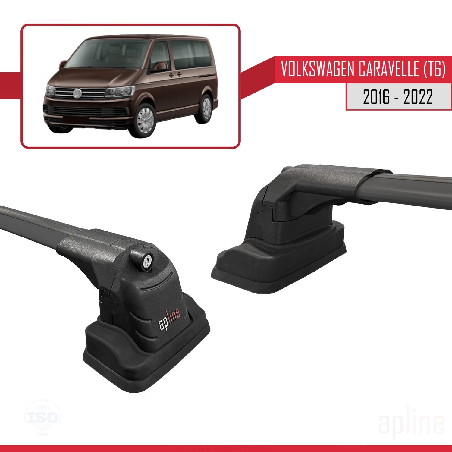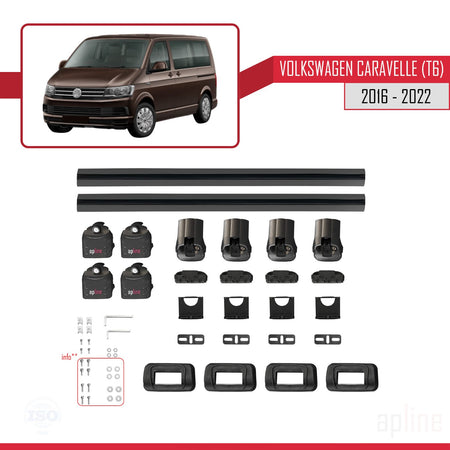 Volkswagen Caravelle (T6) 2016-2022 ace3 Car Roof Rack Cross Bar Black Aluminium 2 Bars
