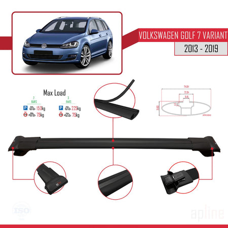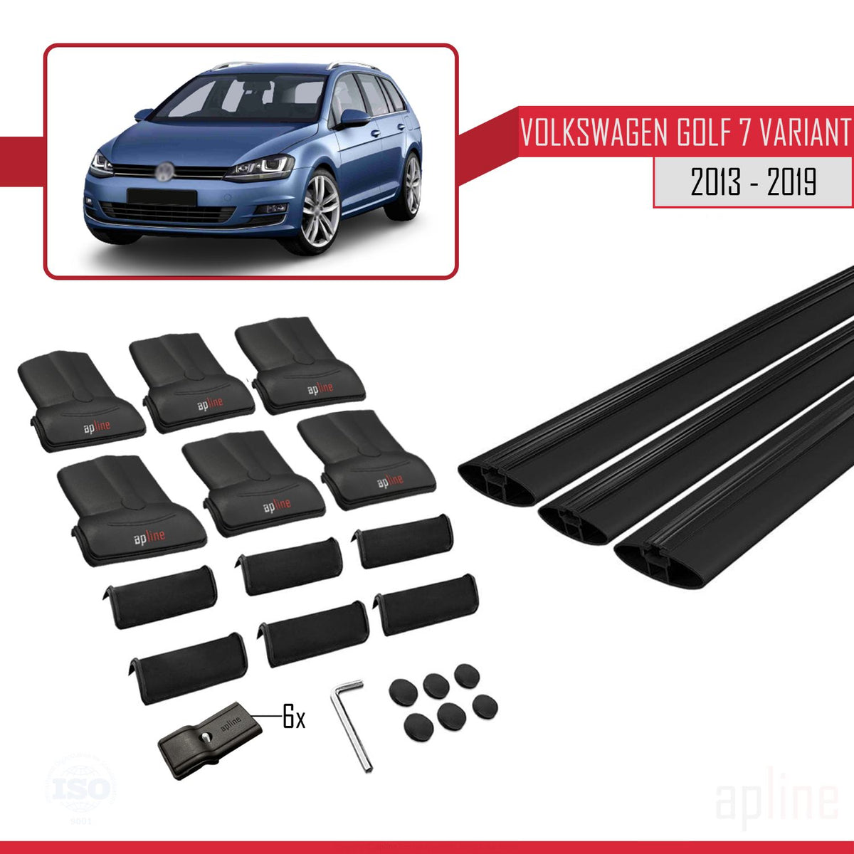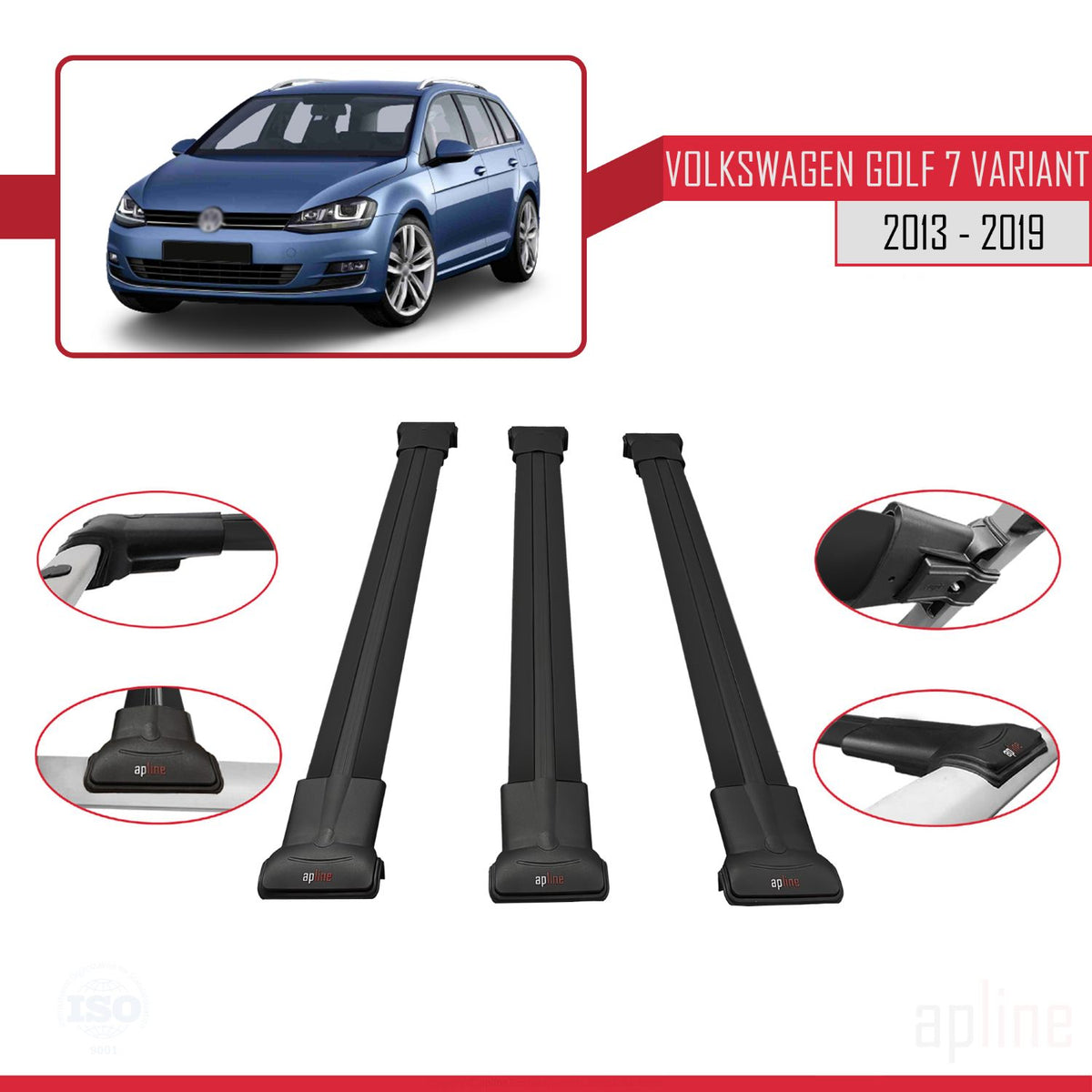Volkswagen Golf 7 (5G) Variant 2013-2019 fly Model Car Roof Rack Cross Bar Black Aluminium 3 Bars