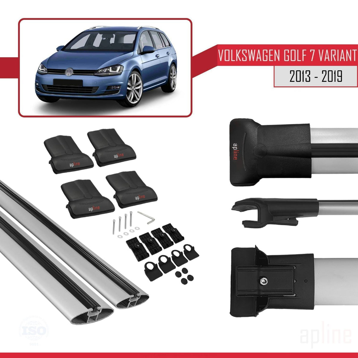 Volkswagen Golf 7 (5G) Variant 2013-2019 fly Model Car Roof Rack Cross Bar Grey Aluminium 2 Bars