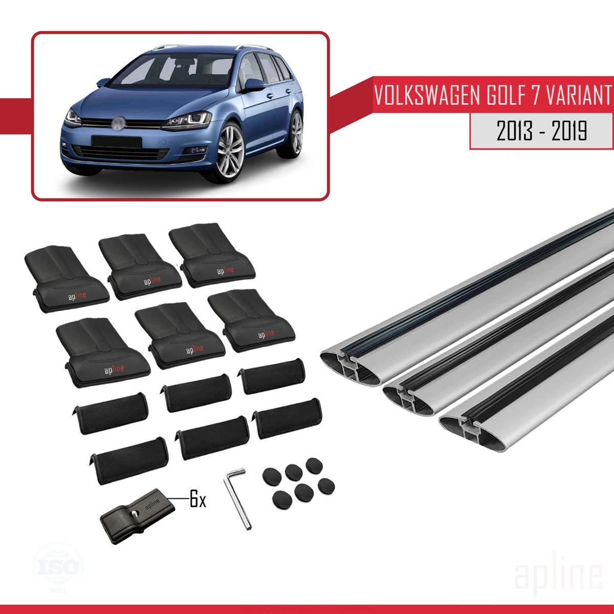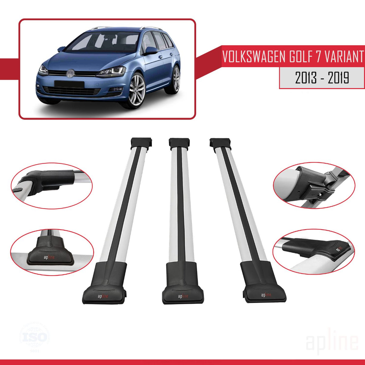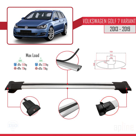 Volkswagen Golf 7 (5G) Variant 2013-2019 fly Model Car Roof Rack Cross Bar Grey Aluminium 3 Bars