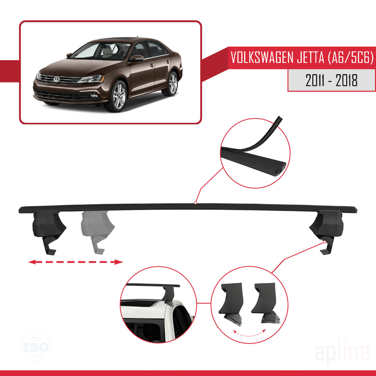 Volkswagen Jetta 6 (5C6) 2011-2018 ace4 Car Roof Rack Cross Bar Black Aluminium 2 Bars