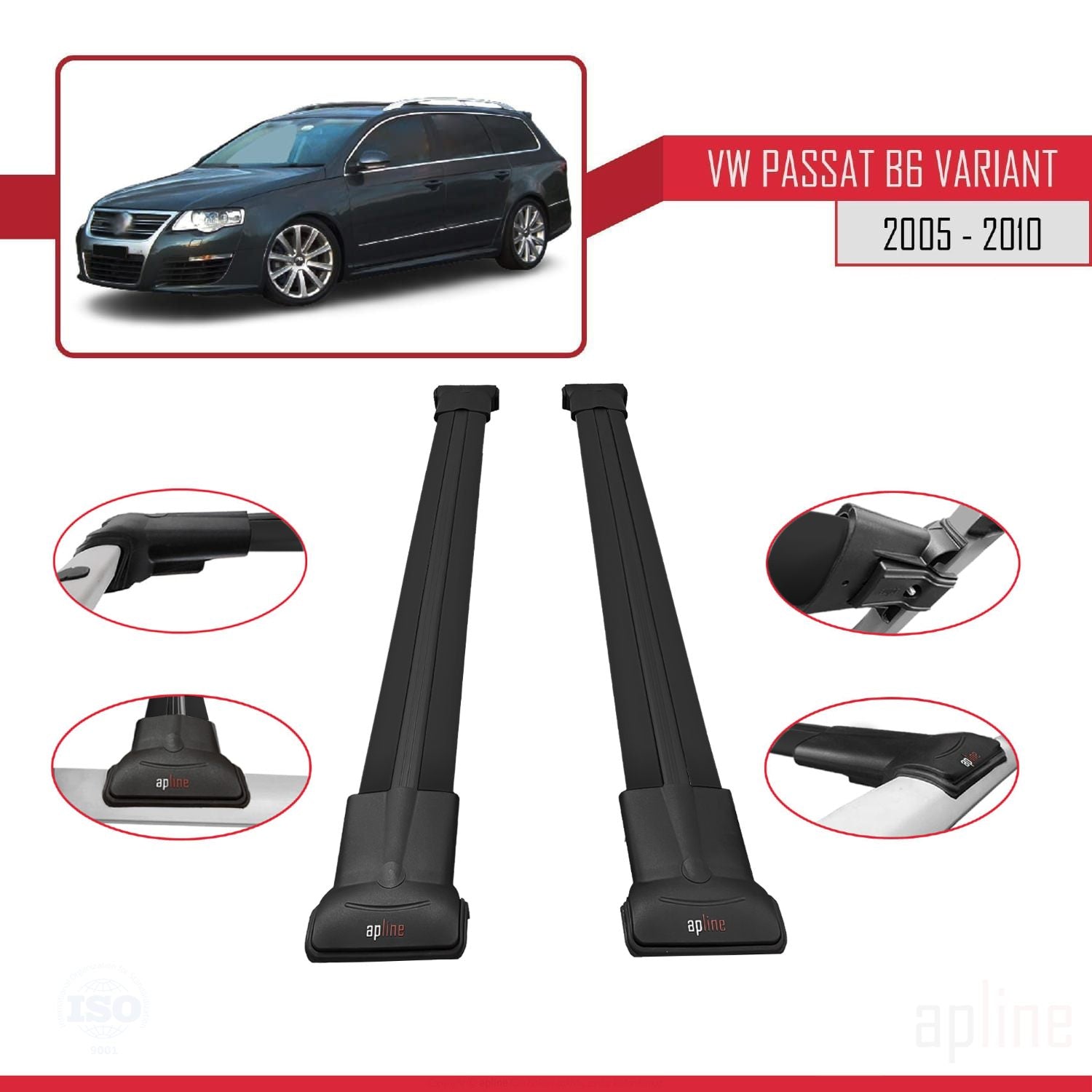 Volkswagen Passat B6 (3C) Variant 2005-2010 fly Model Car Roof Rack Cross Bar Black Aluminium 2 Bars
