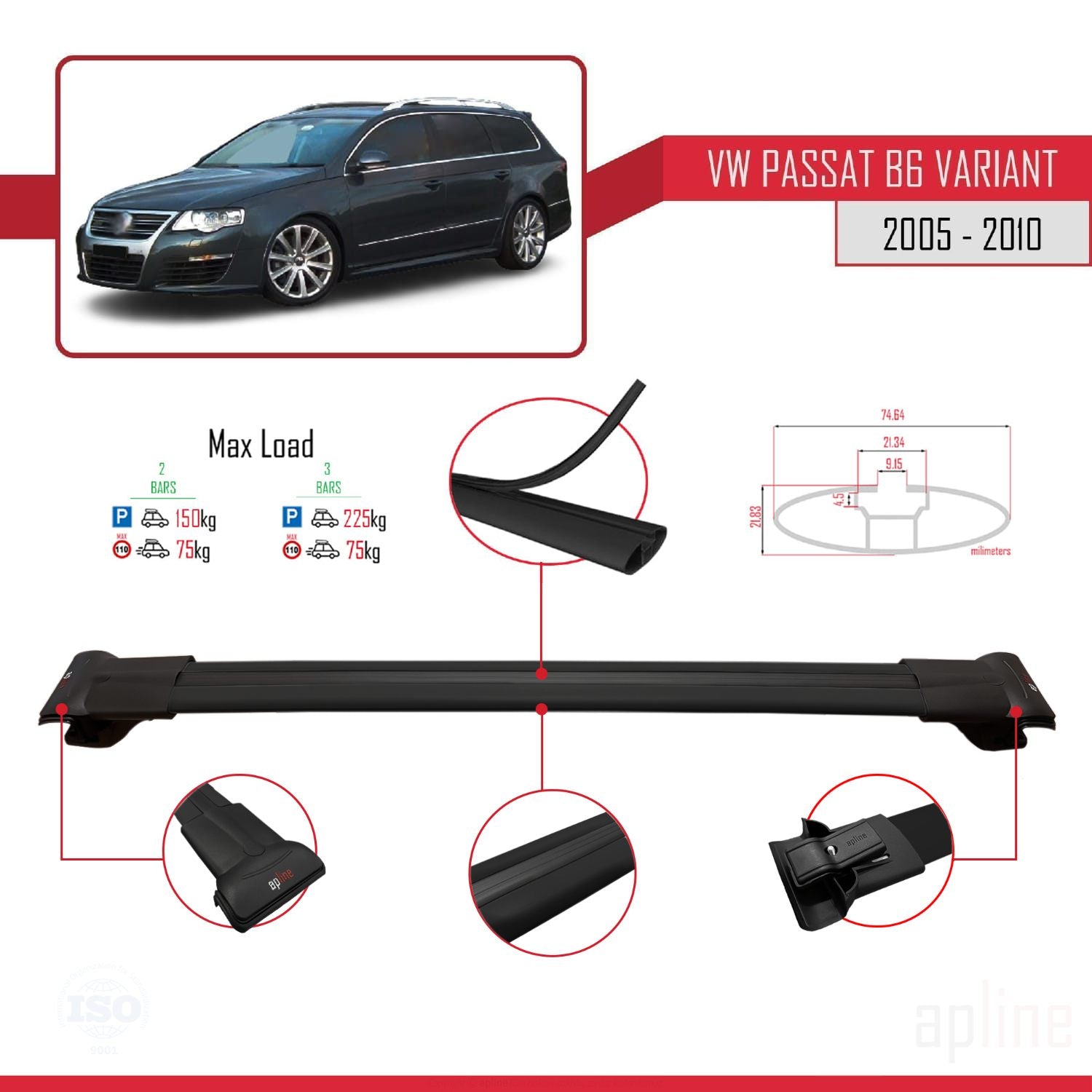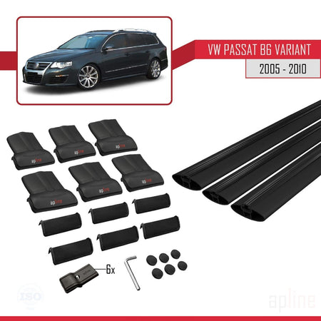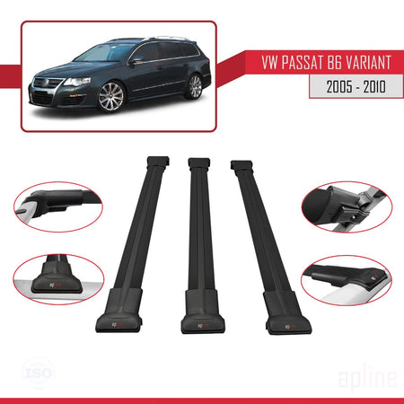 Volkswagen Passat B6 (3C) Variant 2005-2010 fly Model Car Roof Rack Cross Bar Black Aluminium 3 Bars