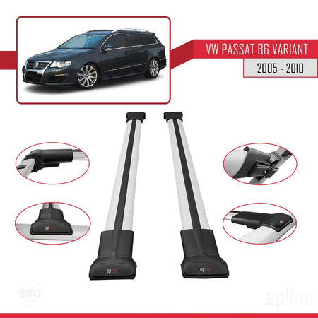 Volkswagen Passat B6 (3C) Variant 2005-2010 fly Model Car Roof Rack Cross Bar Grey Aluminium 2 Bars
