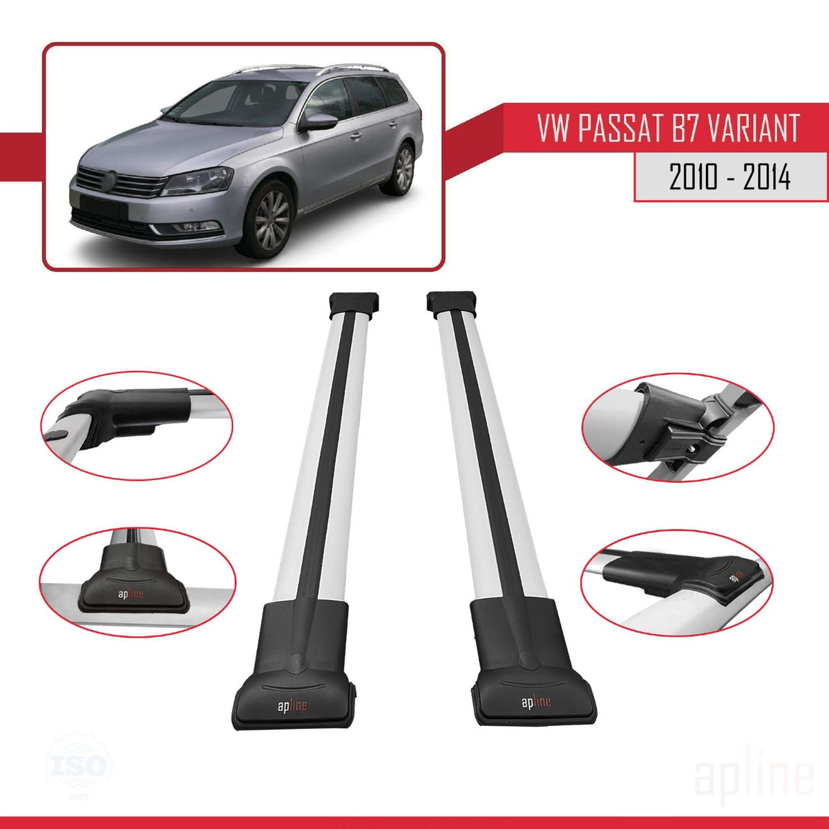 Volkswagen Passat B7 (3C) Variant 2010-2014 fly Model Car Roof Rack Cross Bar Grey Aluminium 2 Bars