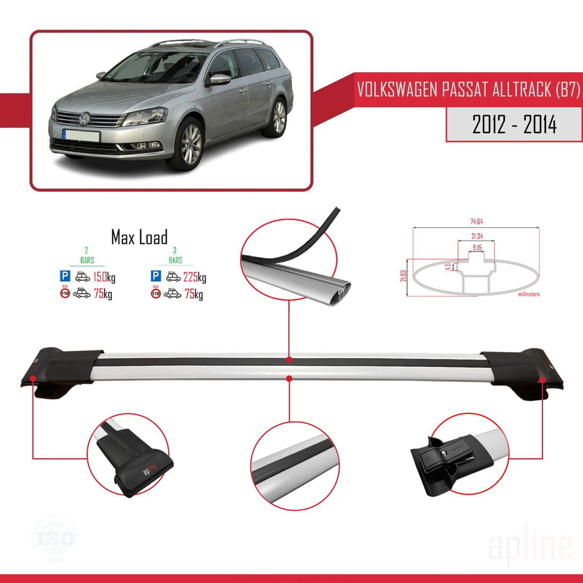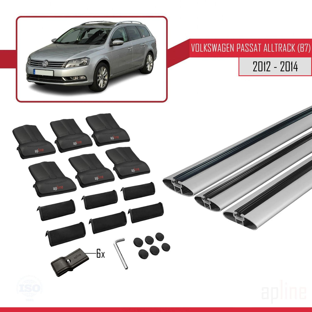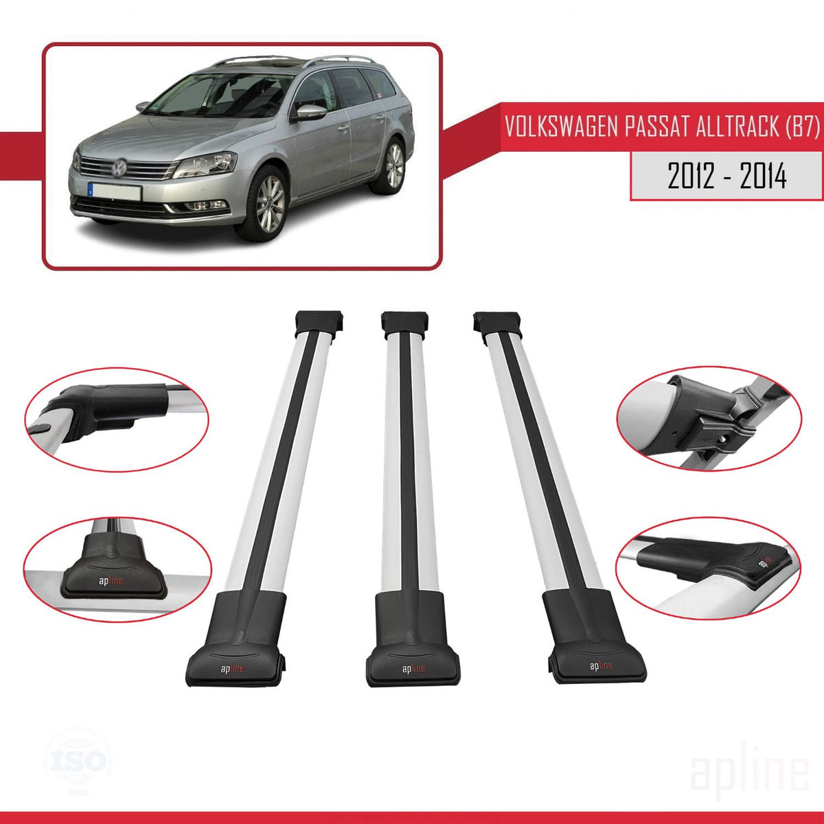 Volkswagen Passat B7 (3C) Alltrack 2012-2014 fly Model Car Roof Rack Cross Bar Grey Aluminium 3 Bars