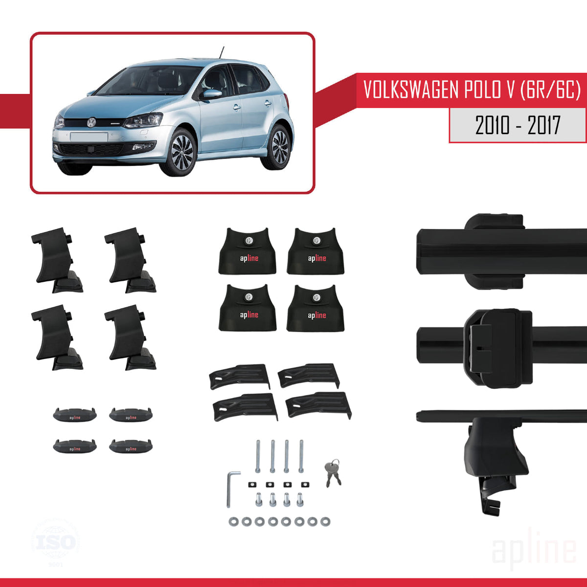 Volkswagen Polo 5 (6R) 2010-2017 ace4 Car Roof Rack Cross Bar Black Aluminium 2 Bars