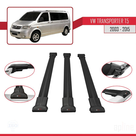 Volkswagen T5 Transporter 2003-2015 fly Model Car Roof Rack Cross Bar Black Aluminium 3 Bars