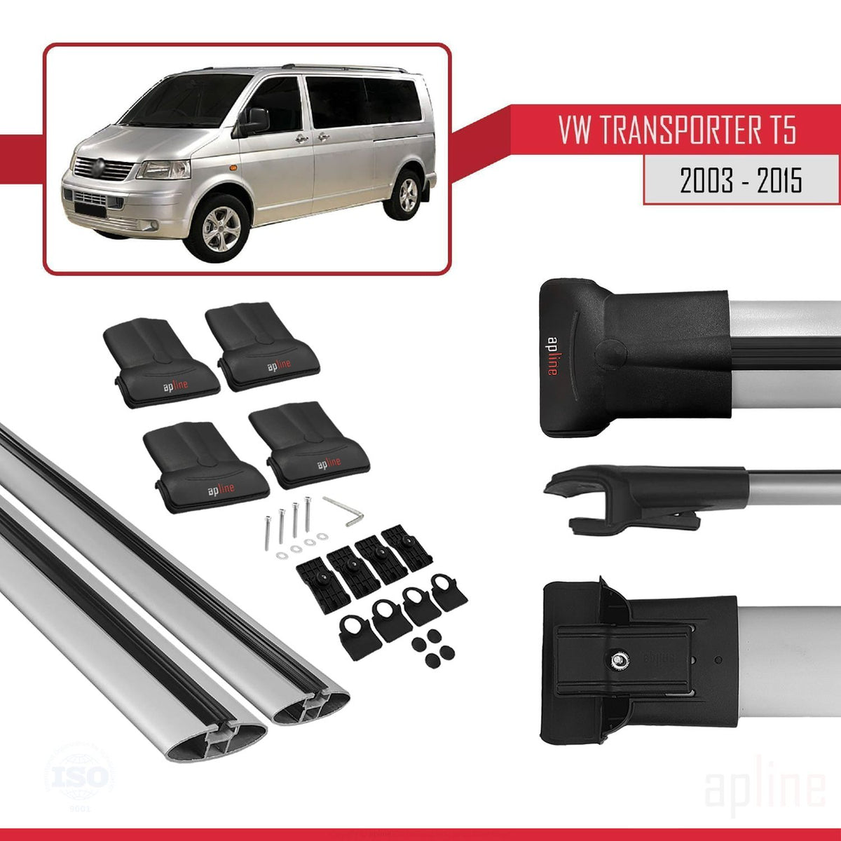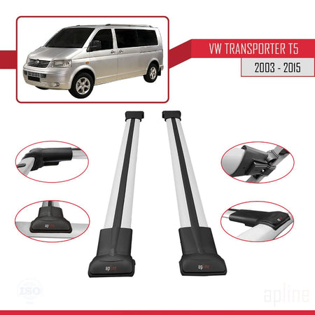 Volkswagen T5 Transporter 2003-2015 fly Model Car Roof Rack Cross Bar Grey Aluminium 2 Bars