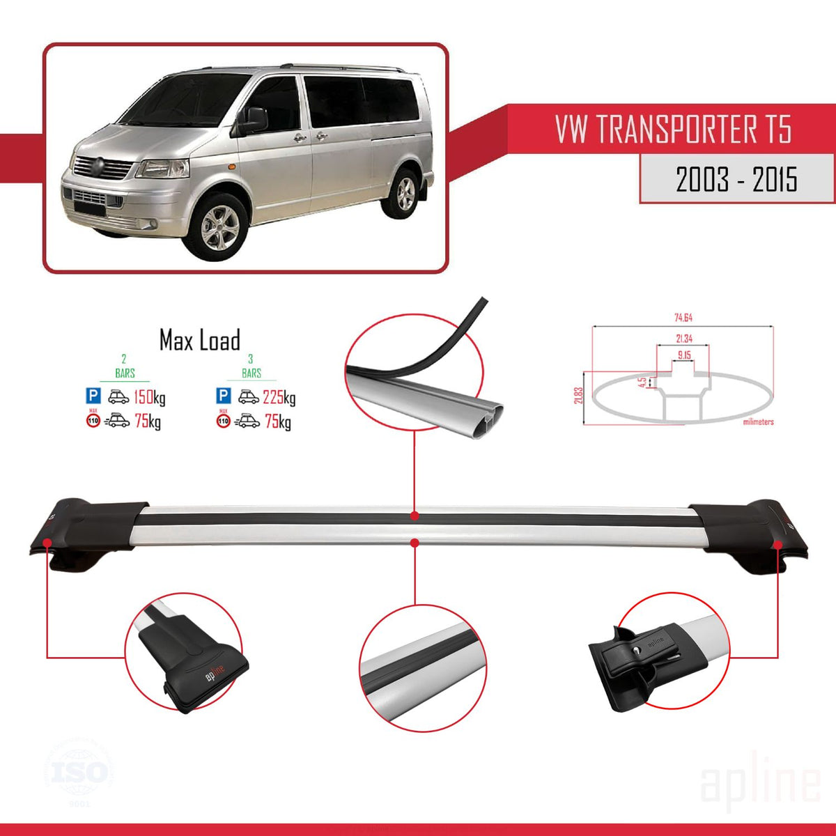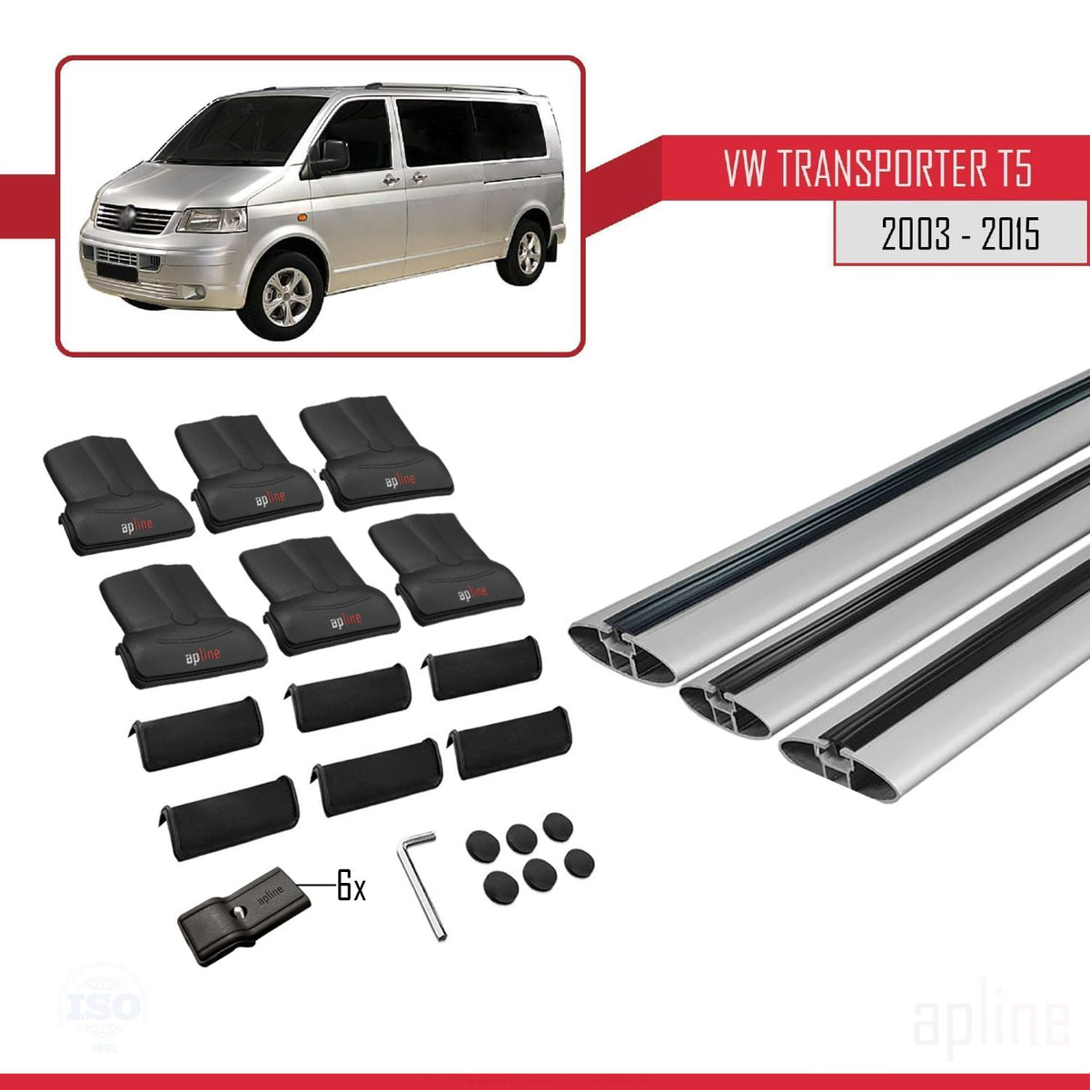 Volkswagen T5 Transporter 2003-2015 fly Model Car Roof Rack Cross Bar Grey Aluminium 3 Bars