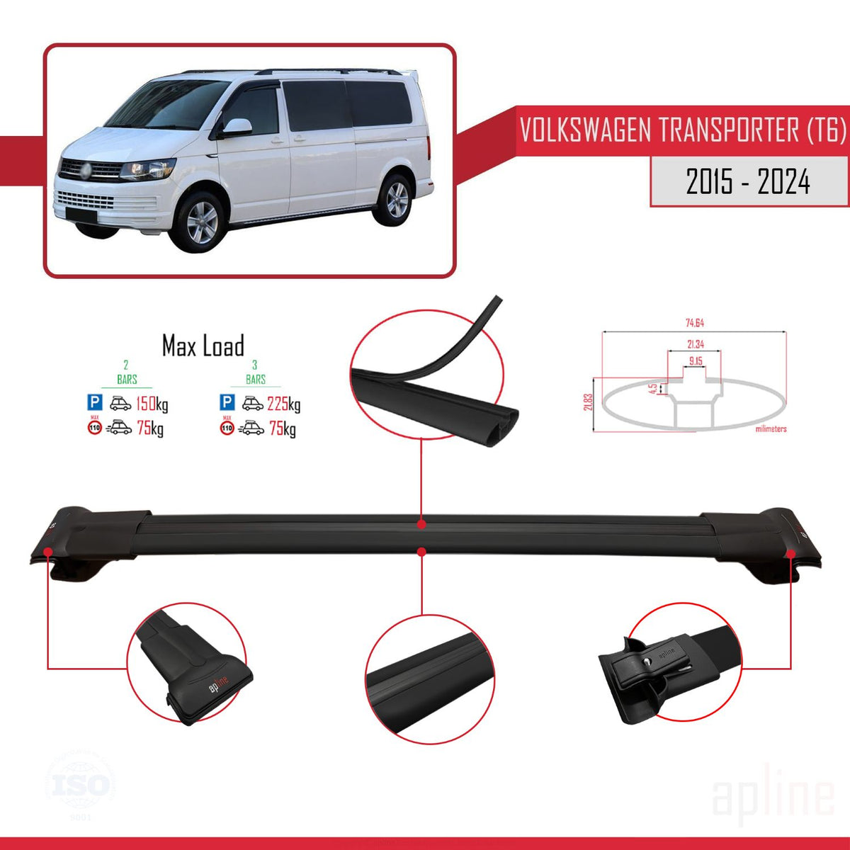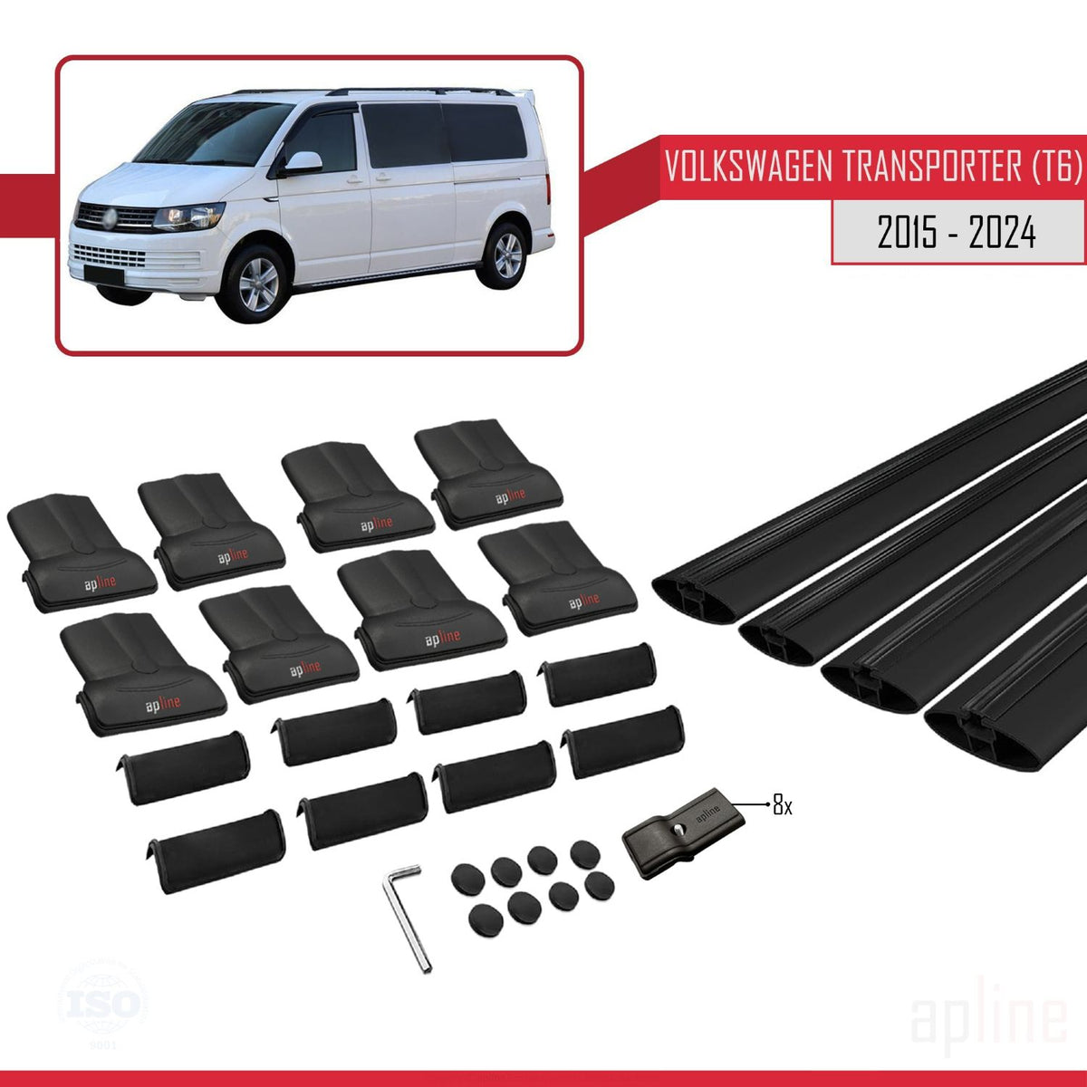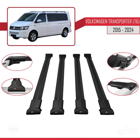 Volkswagen T6 Transporter 2015-2024 fly Model Car Roof Rack Cross Bar Black Aluminium 4 Bars