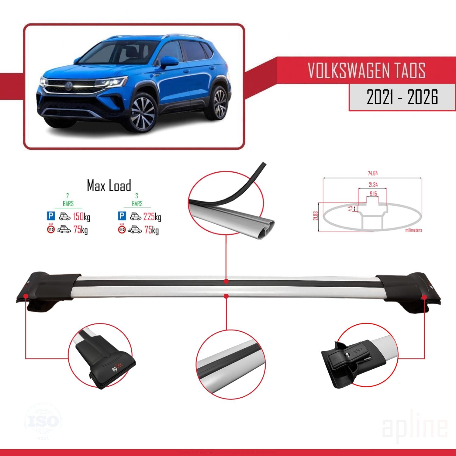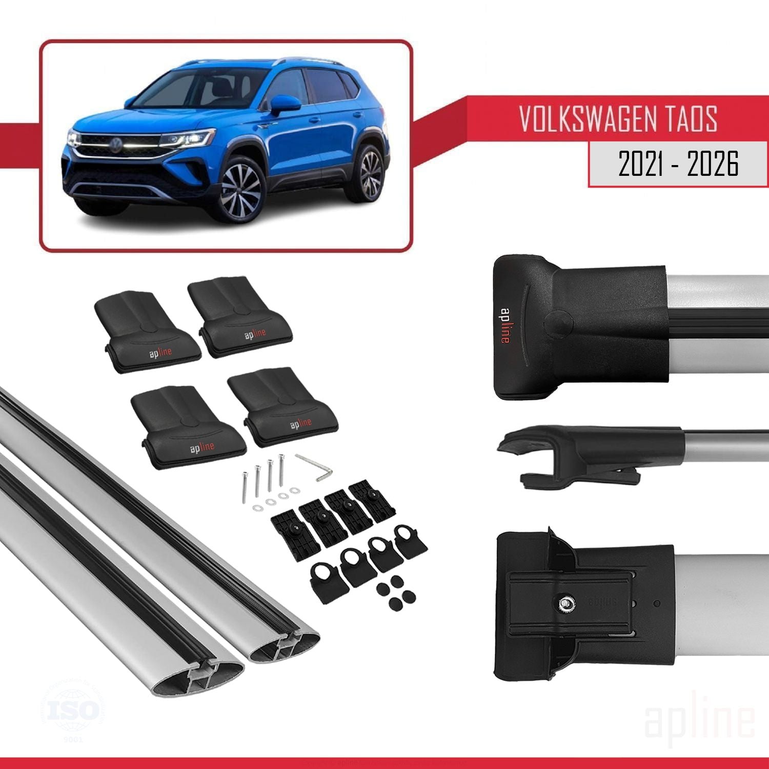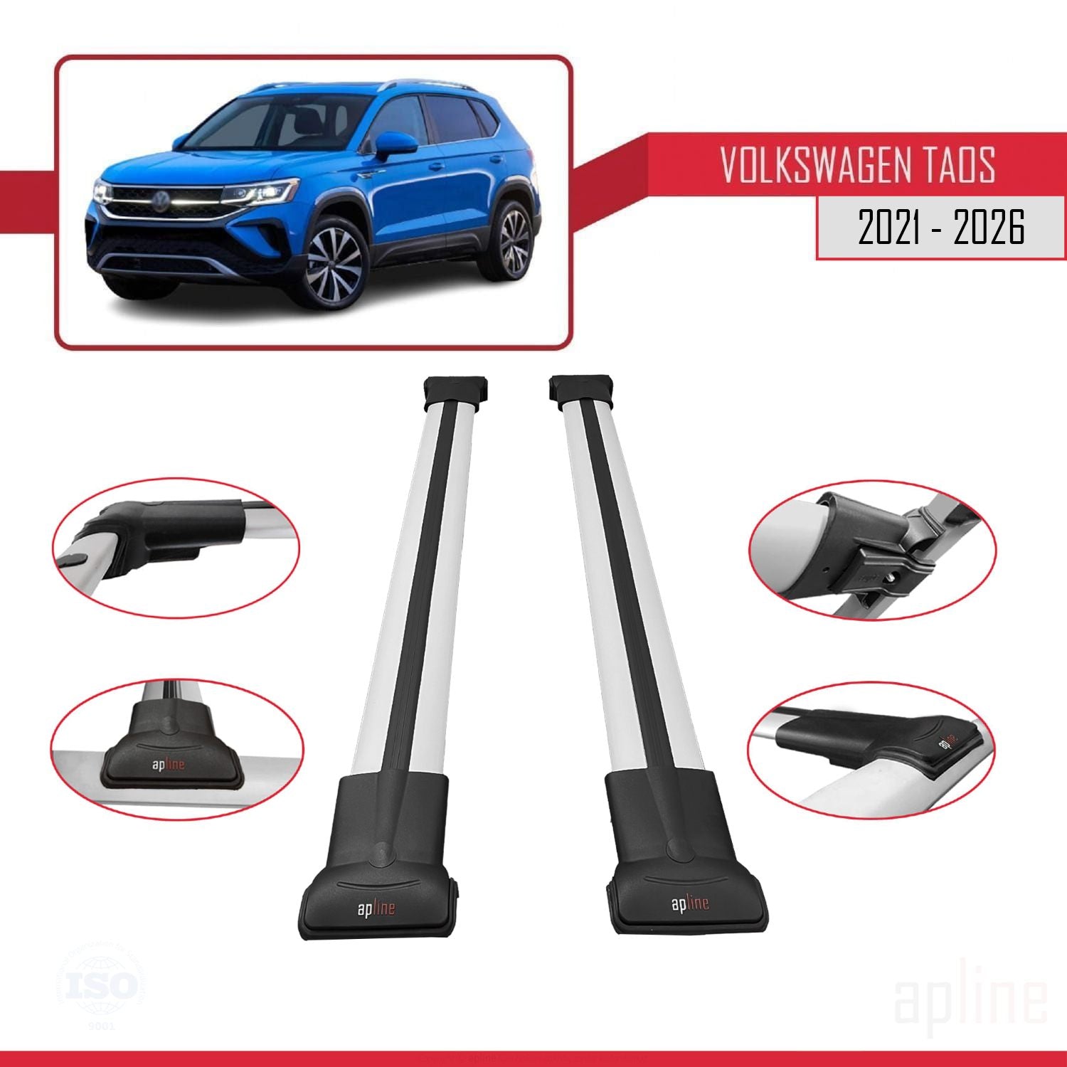 Volkswagen Taos 2021-2025 fly Model Car Roof Rack Cross Bar Grey Aluminium 2 Bars