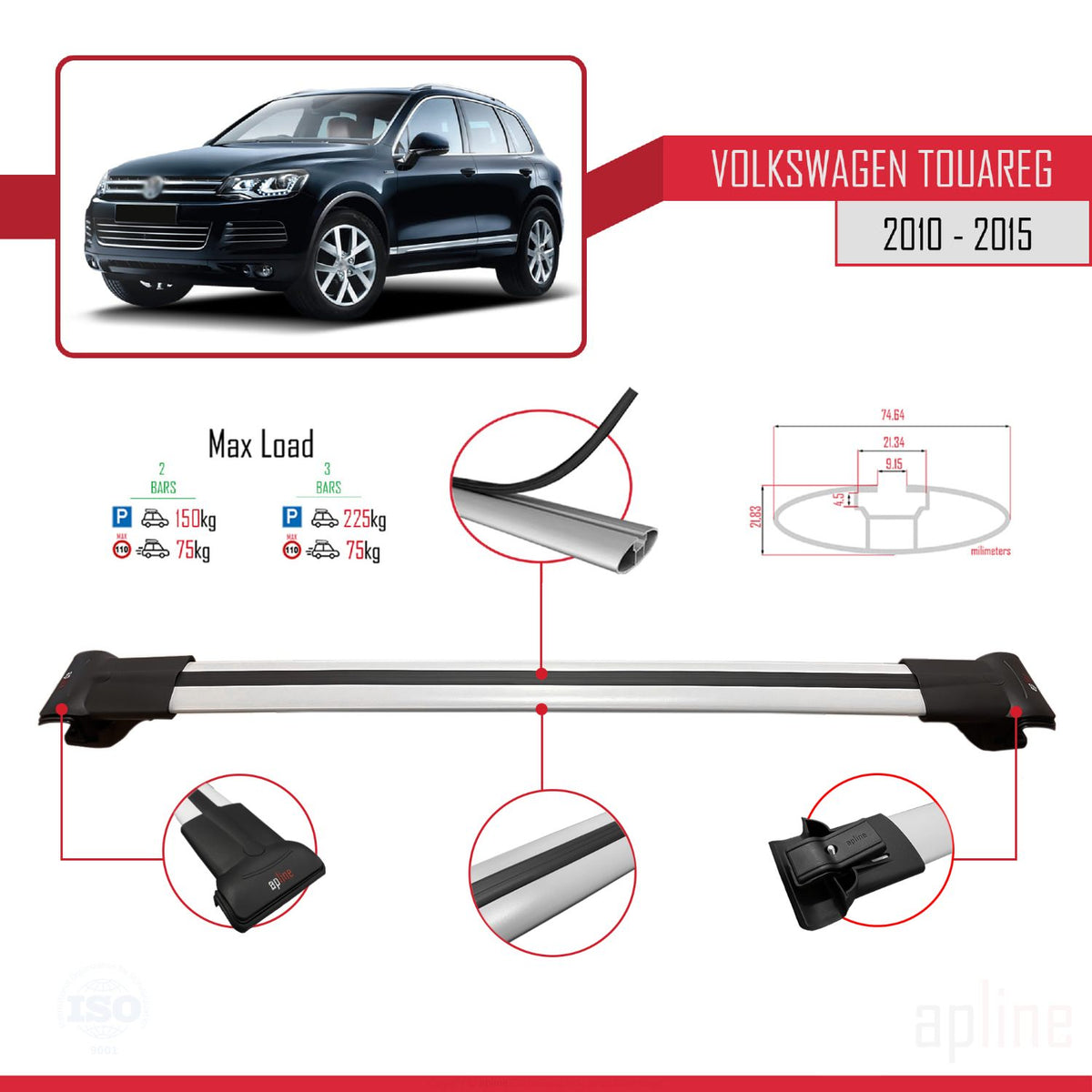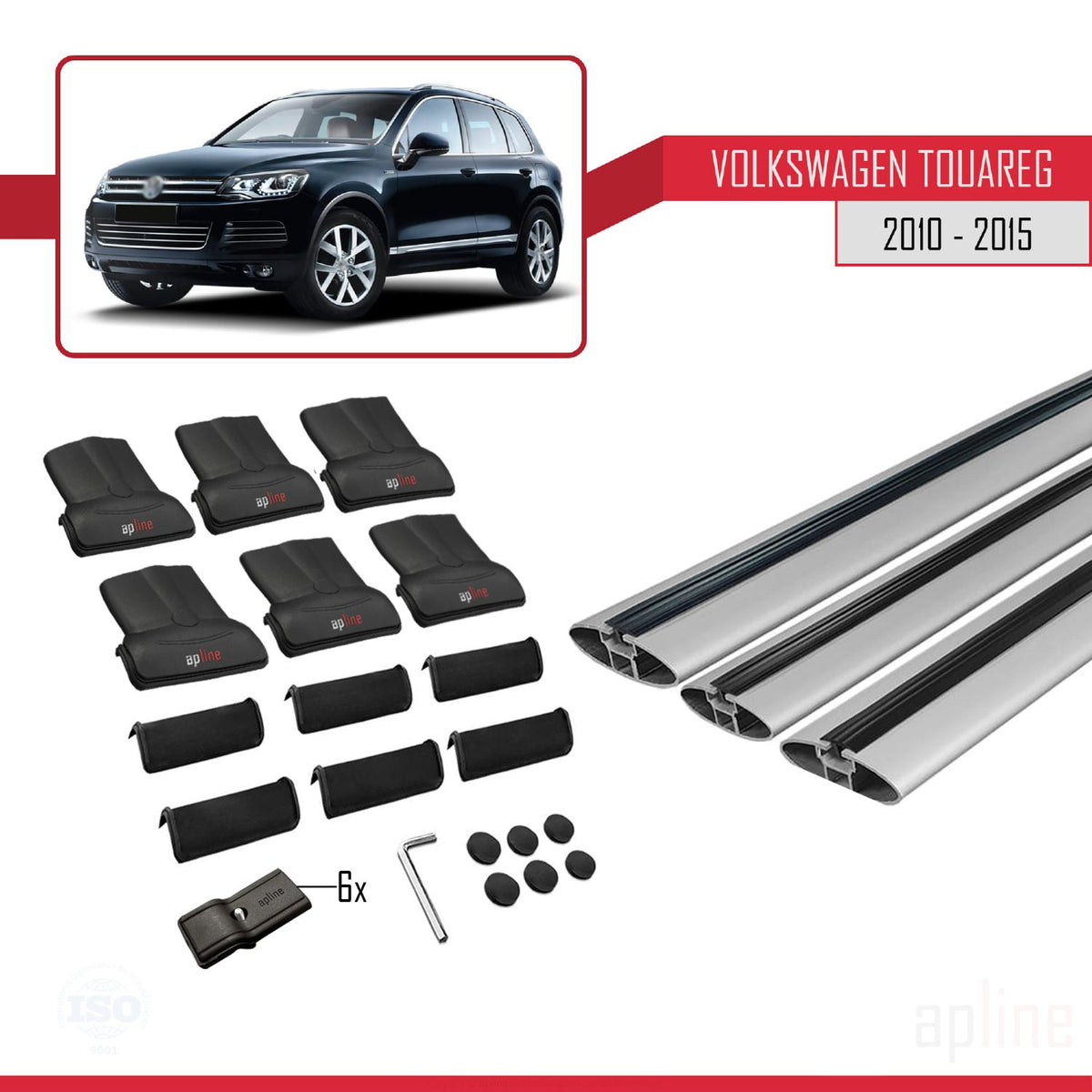 Volkswagen Touareg 2 (7P) Pre-Facelift 2010-2015 fly Model Car Roof Rack Cross Bar Grey Aluminium 3 Bars