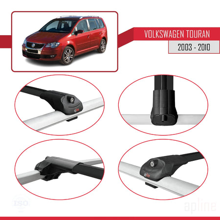 Volkswagen Touran (1T) Pre-Facelift 2003-2010 ACE-1 Car Roof Rack Cross Bar Black Aluminium 2 Bars