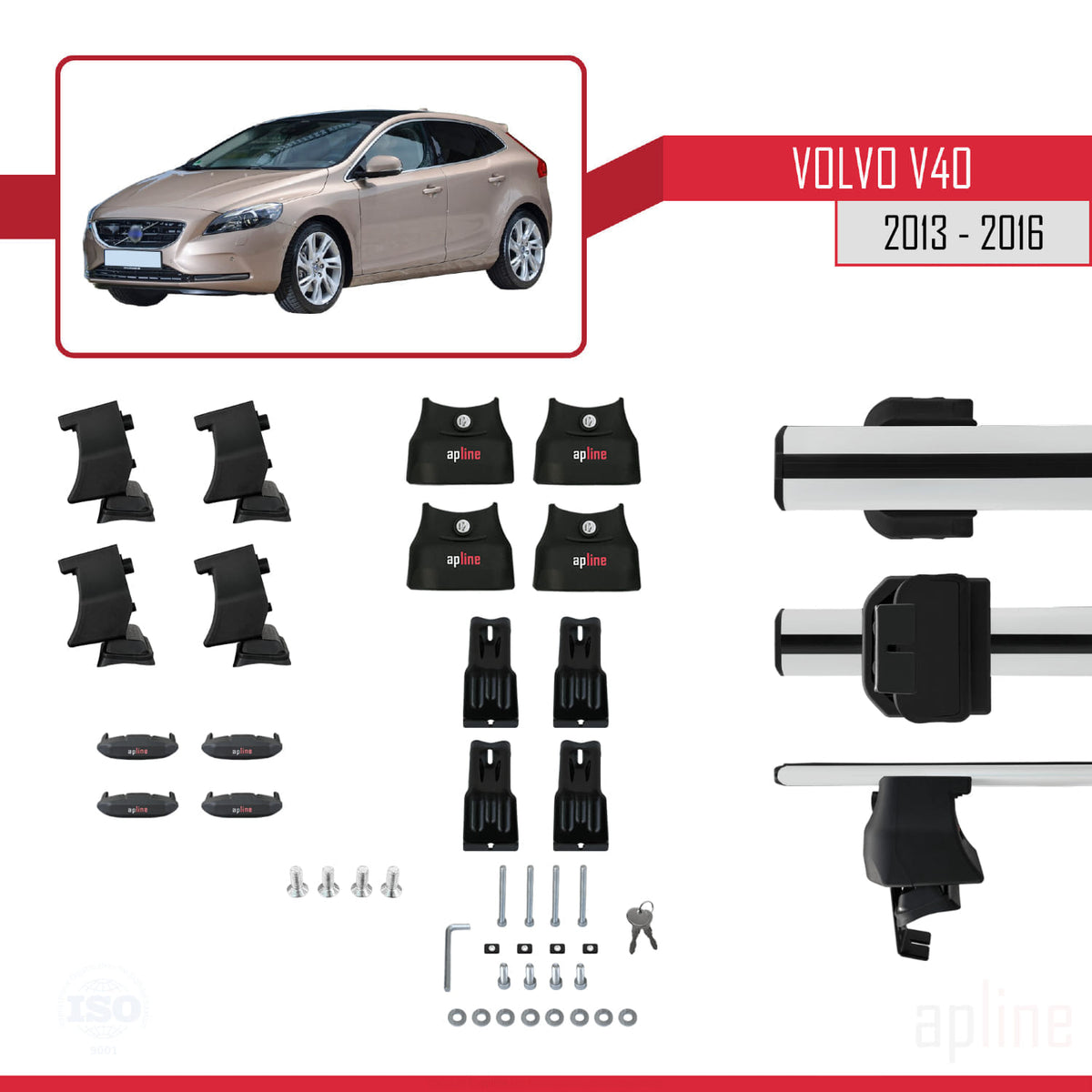 Volvo V40 Pre-Facelift 2013-2016 ace4 Car Roof Rack Cross Bar Grey Aluminium 2 Bars