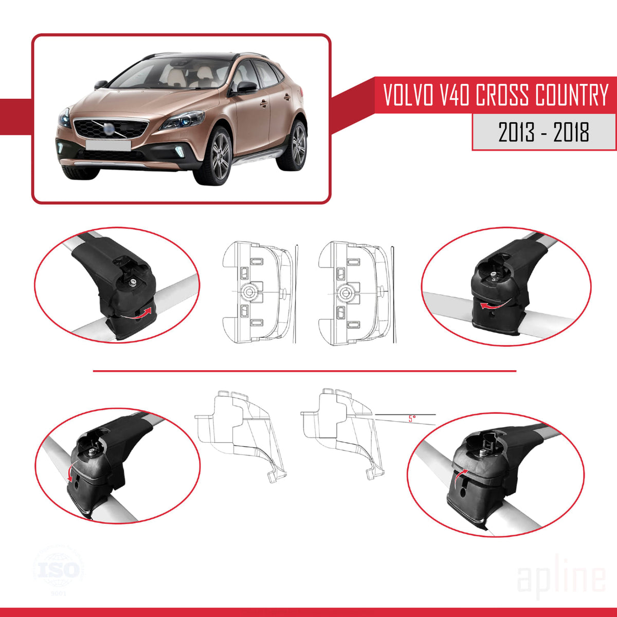 Volvo V40 Cross Country 2013-2018 ace2 Car Roof Rack Cross Bar Grey Aluminium 2 Bars