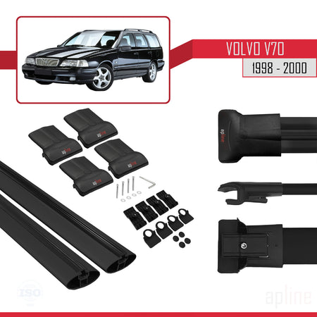 Volvo V70 1998-2000 fly Model Car Roof Rack Cross Bar Black Aluminium 2 Bars