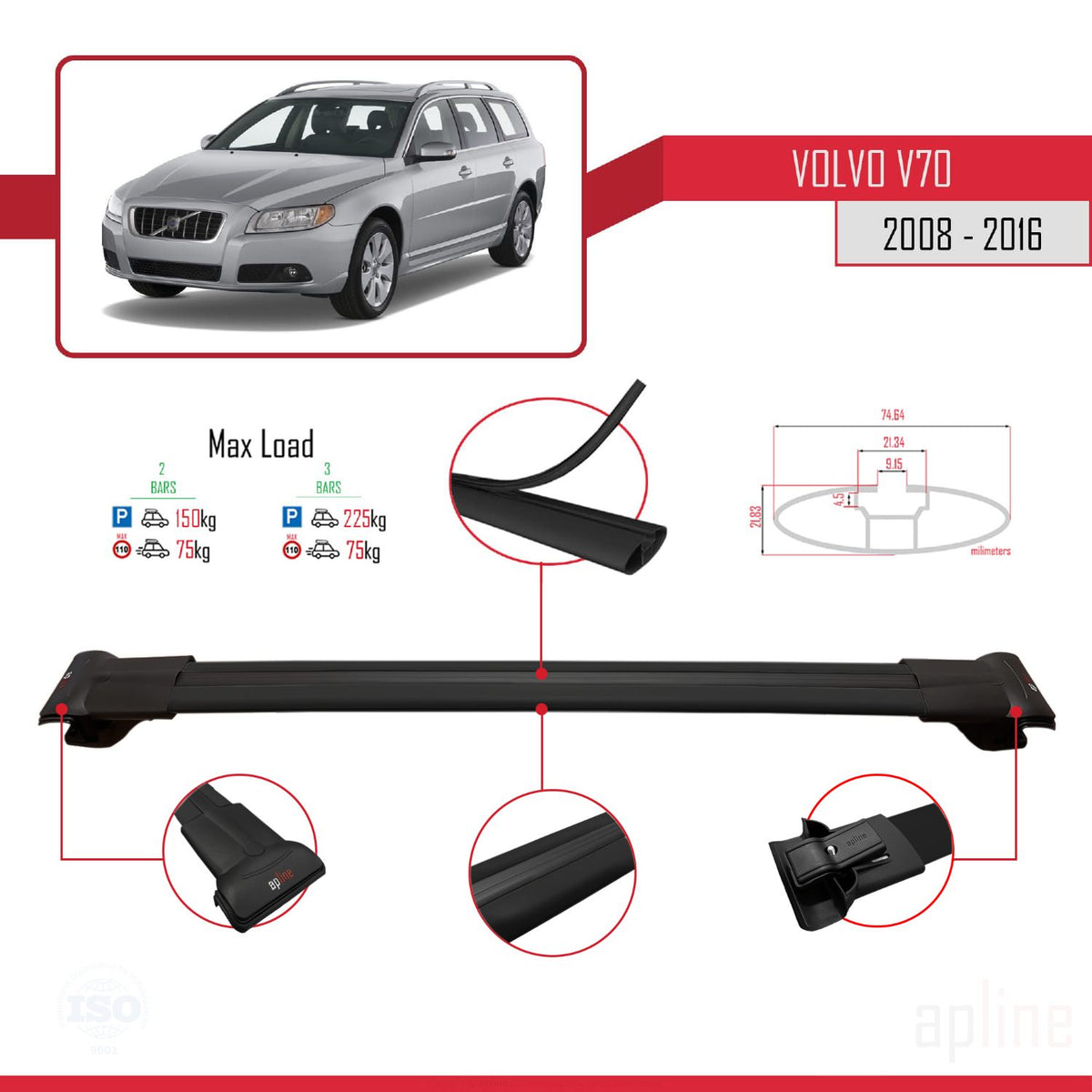 Volvo V70 III 2008-2016 fly Model Car Roof Rack Cross Bar Black Aluminium 3 Bars