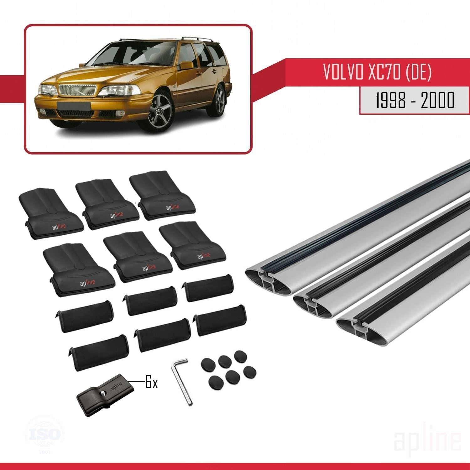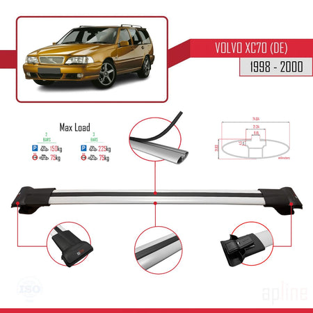 Volvo XC70 1998-2000 fly Model Car Roof Rack Cross Bar Grey Aluminium 3 Bars