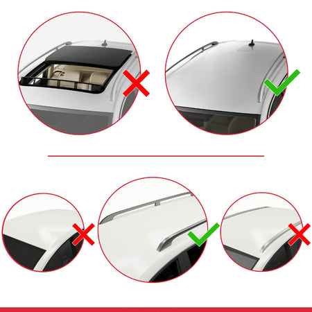 Note: Not compatible with vehicles without roof rails. Please check the technical drawings in the images to ensure compatibility with 3rd-party accessories.