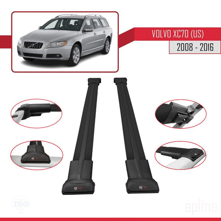 Volvo XC70 II (P24) 2008-2016 fly Model Car Roof Rack Cross Bar Black Aluminium 2 Bars