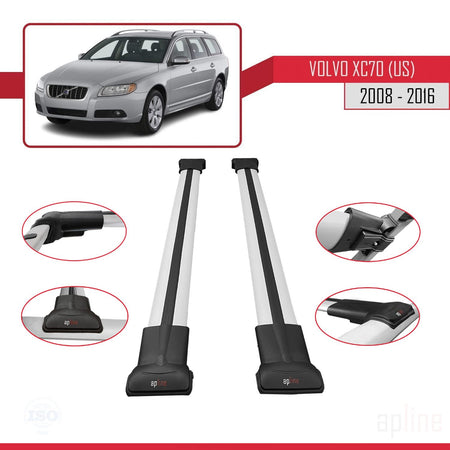 Volvo XC70 II (P24) 2008-2016 fly Model Car Roof Rack Cross Bar Grey Aluminium 2 Bars