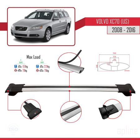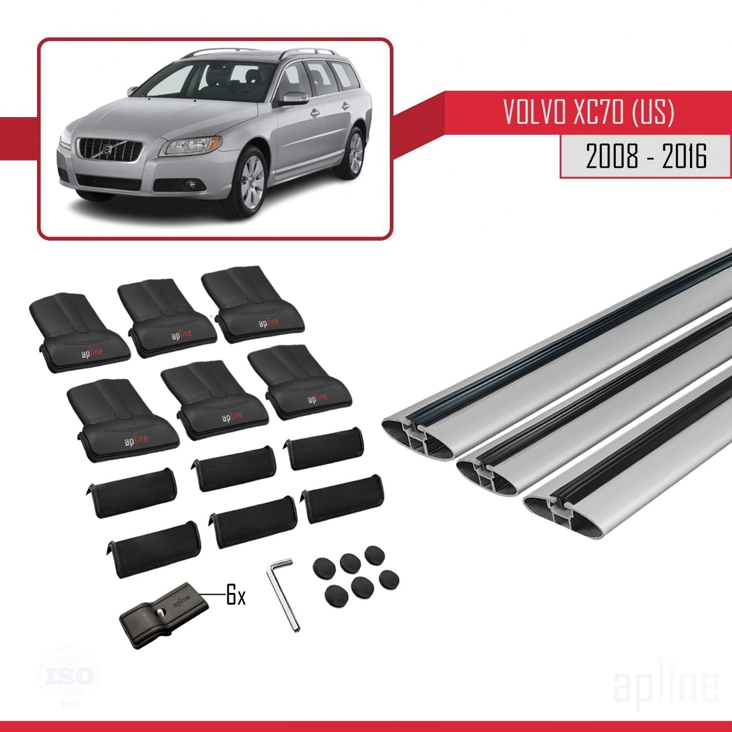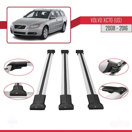 Volvo XC70 II (P24) 2008-2016 fly Model Car Roof Rack Cross Bar Grey Aluminium 3 Bars