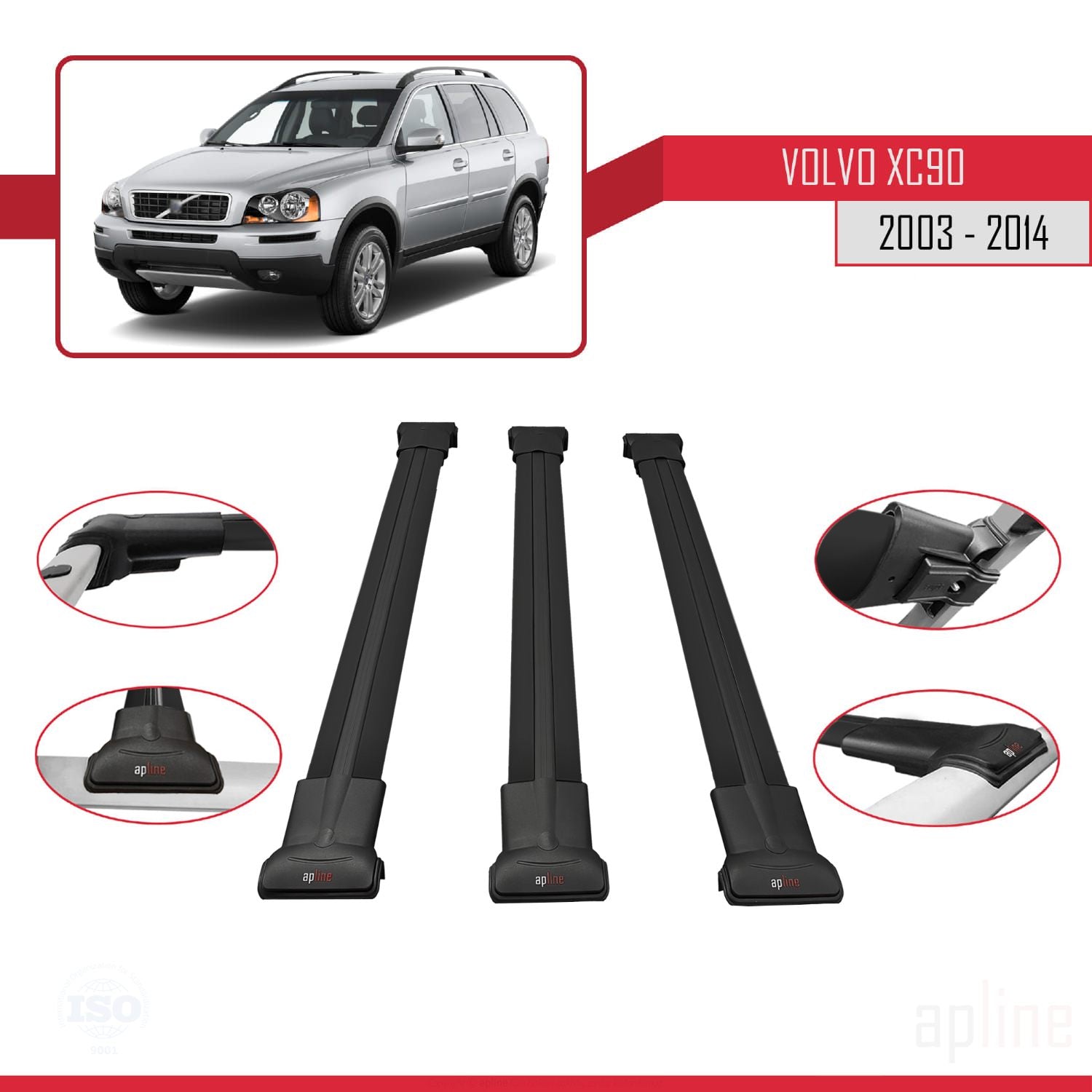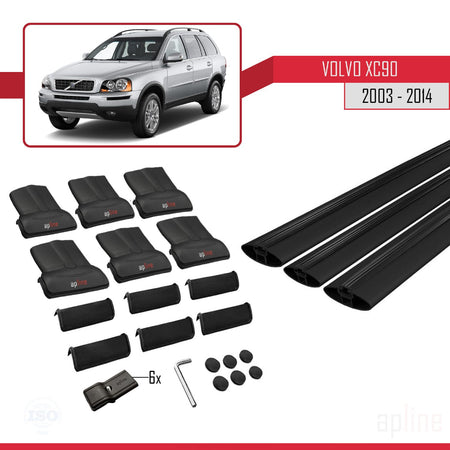 Volvo XC90 2003-2014 fly Model Car Roof Rack Cross Bar Black Aluminium 3 Bars