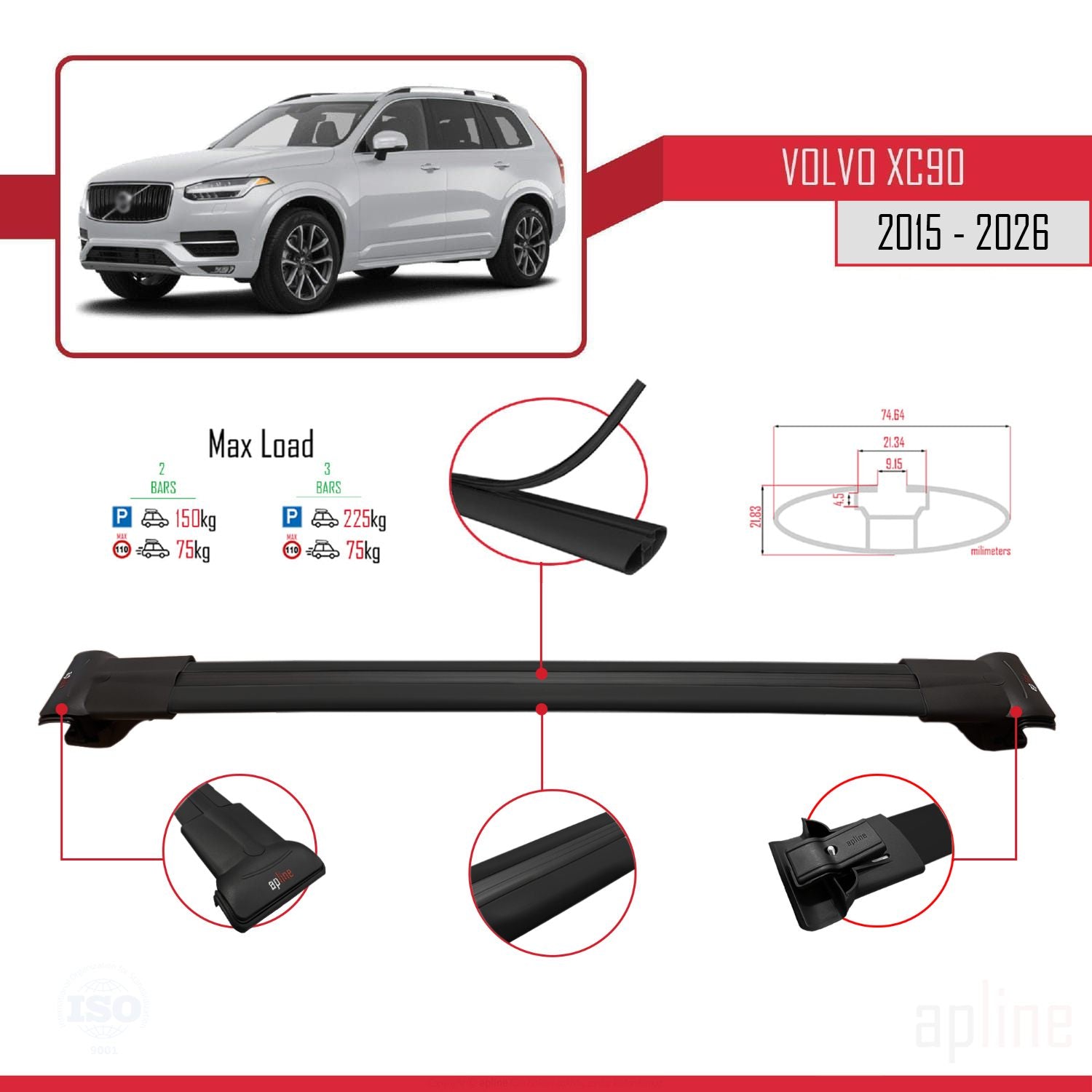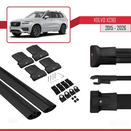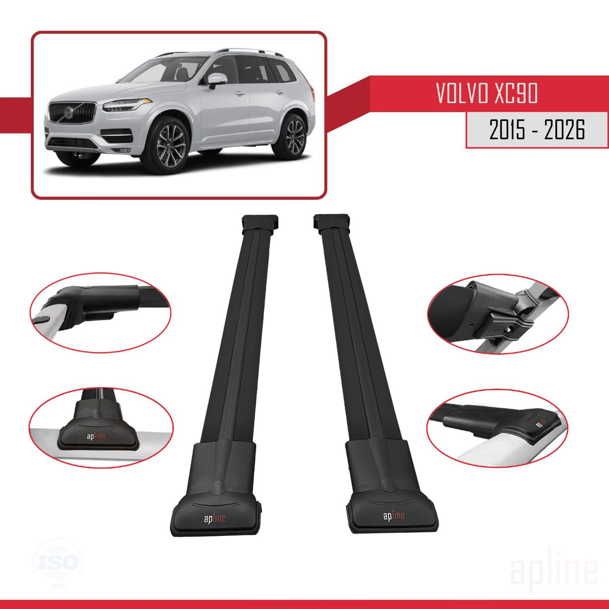 Volvo XC90 II 2015-2025 fly Model Car Roof Rack Cross Bar Black Aluminium 2 Bars