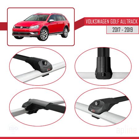 VW Golf Alltrack Mk7 2017-2019 ACE-1 Car Roof Rack Cross Bar Black Aluminium 2 Bars
