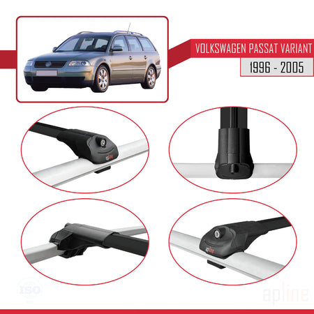 VW Passat B5 Variant 1996-2005 ACE-1 Car Roof Rack Cross Bar Black Aluminium 2 Bars